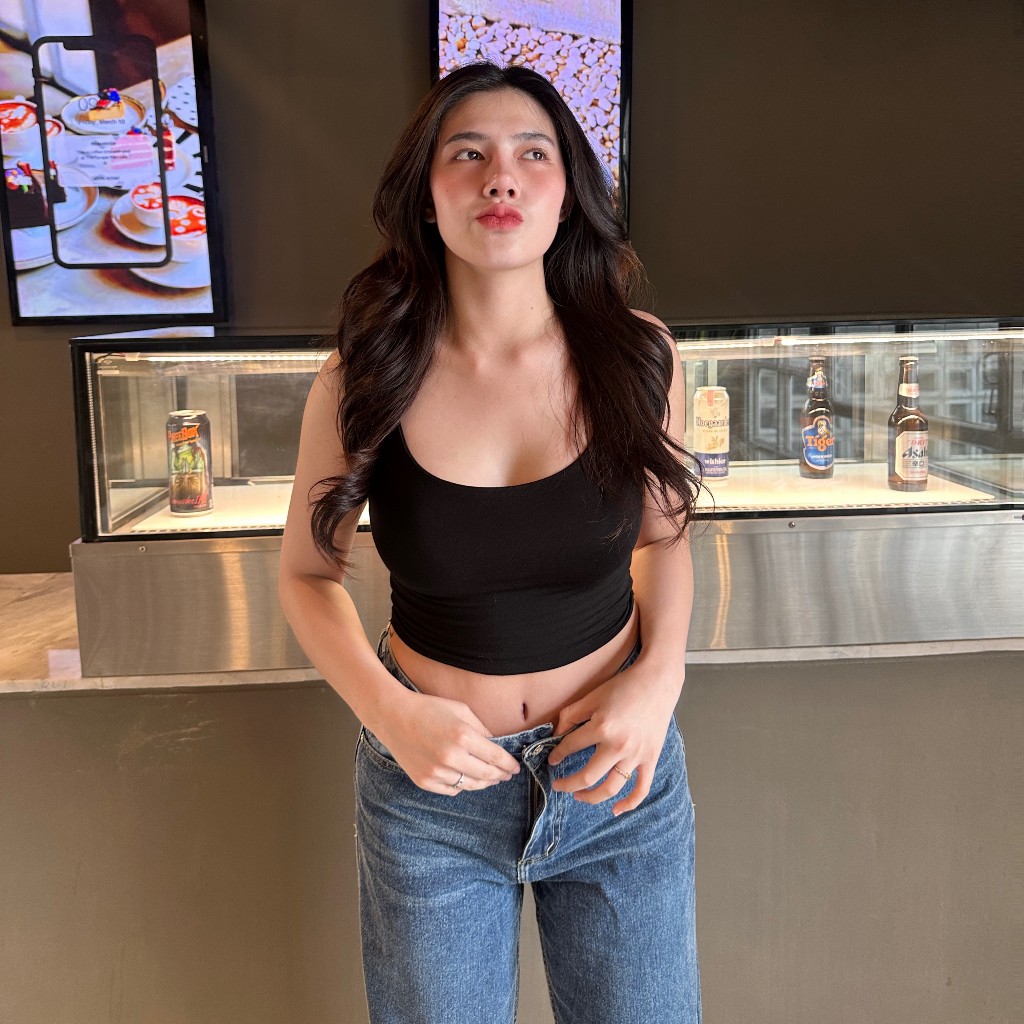 เสื้อสายเดี่ยว ผ้าเรย่อนยืดเยอะ 🍒 สาวอวบก็ใส่ได้น้า ใส่เที่ยวทะเลน่าร้าก พร้อมส่งทุกสีค่า รุ่น เดี่ยวสั้น