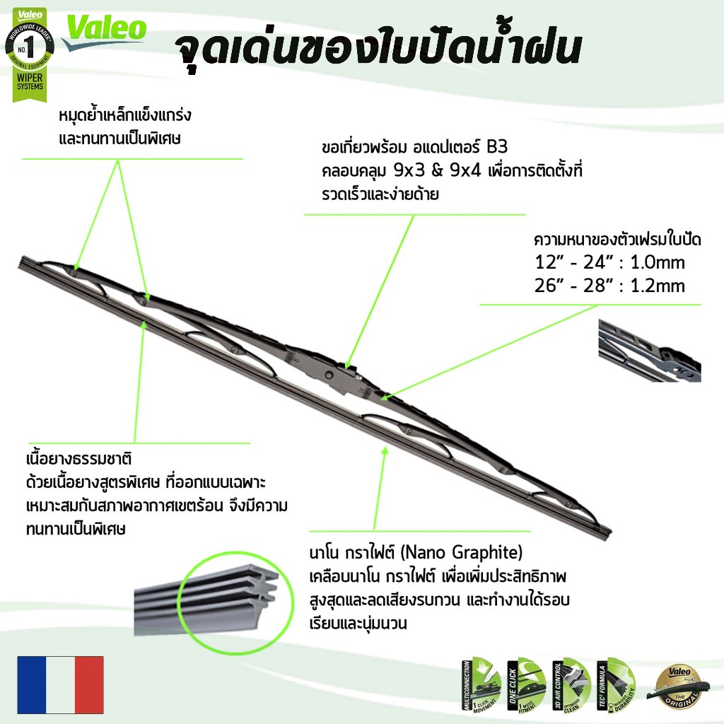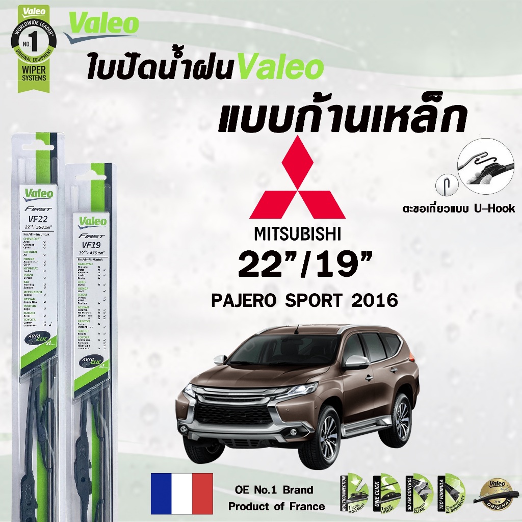 Valeo ใบปัดน้ำฝน แบบก้านเหล็ก แบบคู่ ขนาด 22/19 MITSUBISHI PAJERO SPORT (ราคาต่อ 2 ชิ้น)