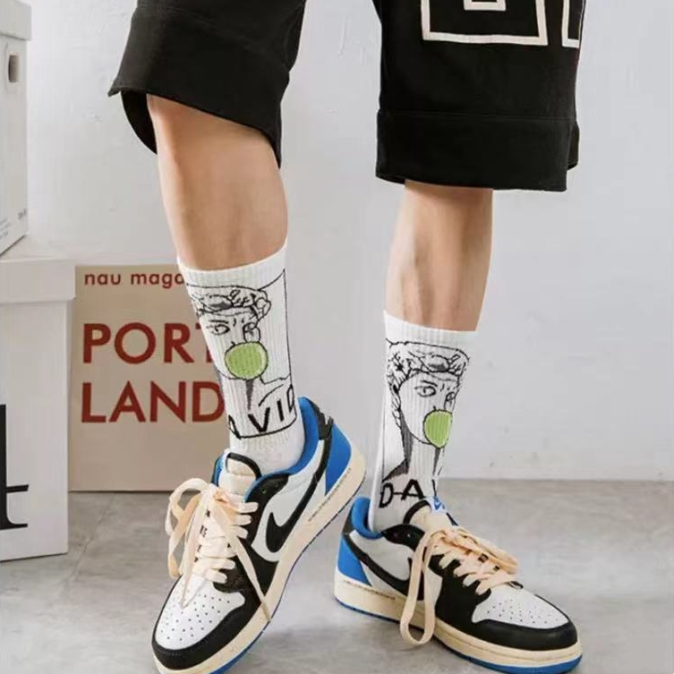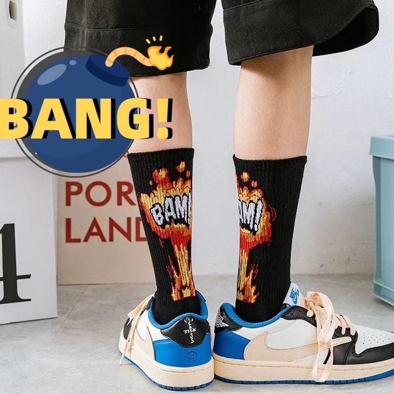 👽 (ได้รับ 2-3 วัน)👽 จัดส่งจากประเทศไทย~ถุงเท้าข้อสูงเทรนด์สตรีท 5 คู่ ถุงเท้าผ้าฝ้ายแท้