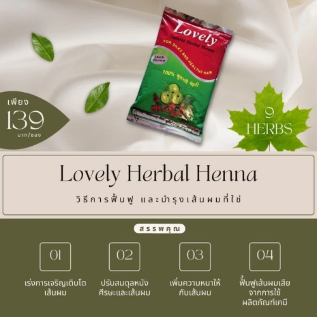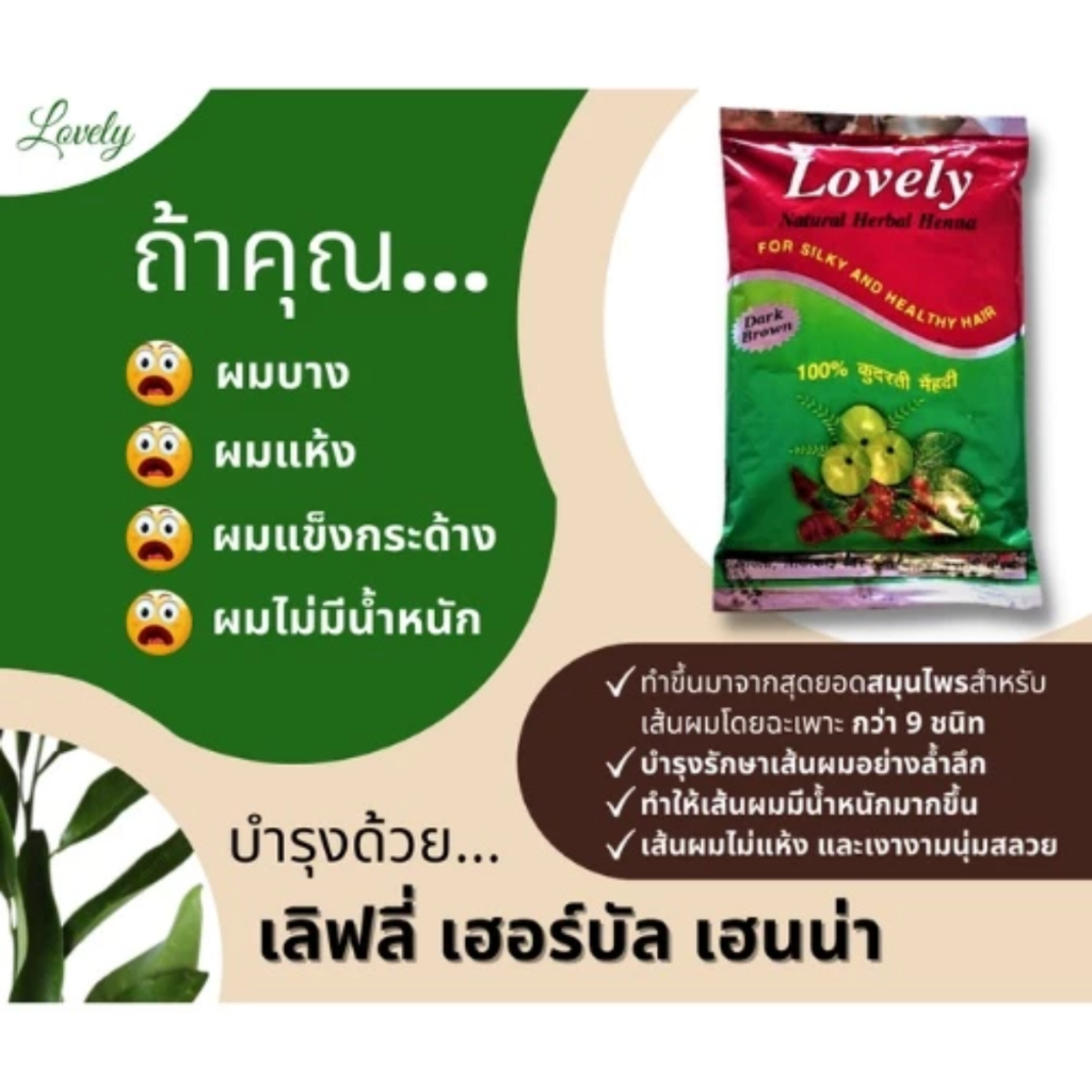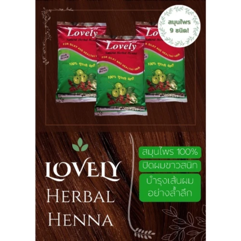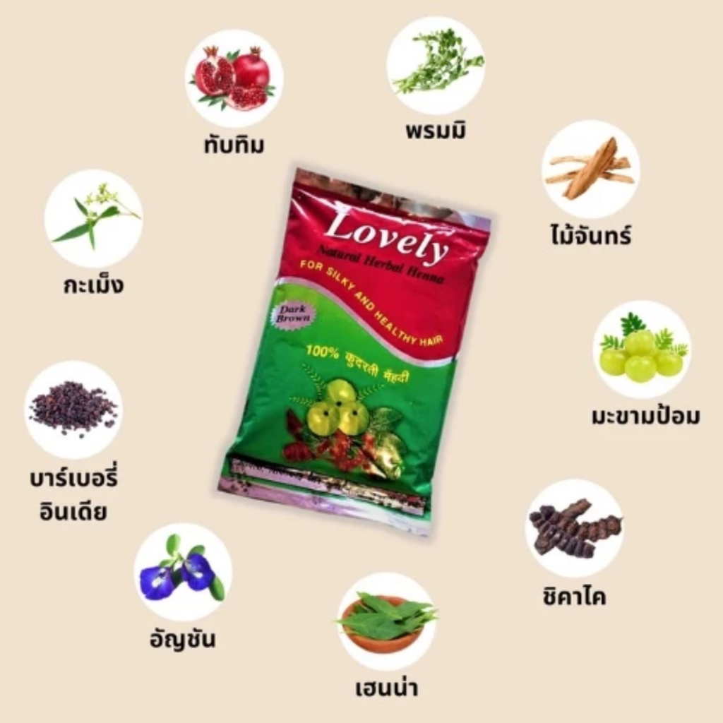 Lovely Herbal Henna ผงย้อมสมุนไพรเลิฟรี่ เฮนน่า สูตรผสมเสร็จ ปลอดภัย ปราศจากสารเคมี จากอินเดีย ปกปิดผมขาว (200 g)