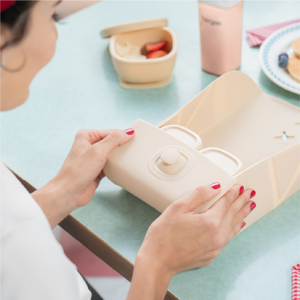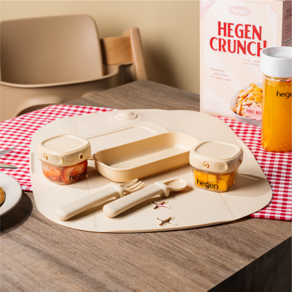 Hegen ชุดเริ่มต้นทานอาหาร พร้อมแผ่นรองจานซิลิโคนพับได้ สี Taupe สุดพรีเมียม - Mealtime Starter Kit