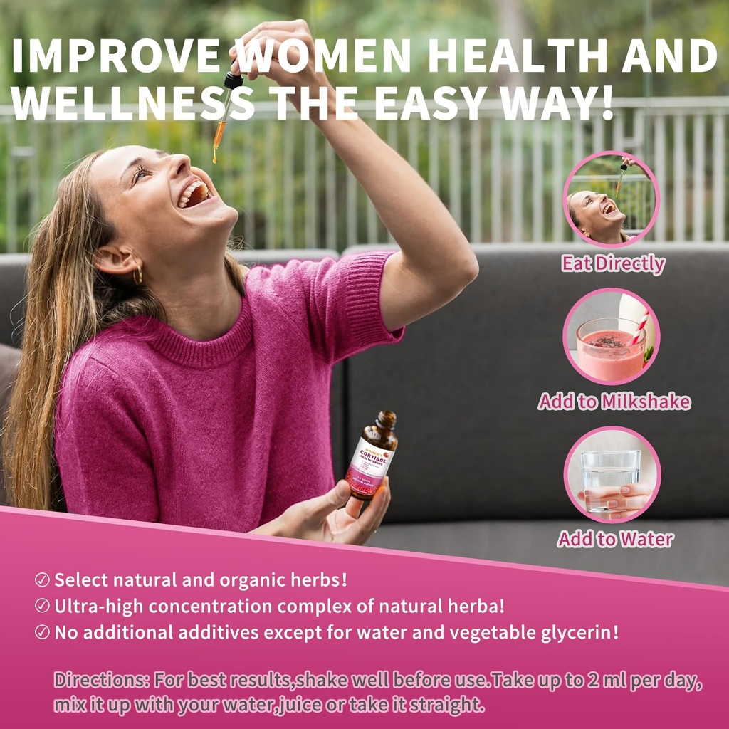 Cortisol-Lowering Liquid Drops สําหรับผู้หญิง,เสริม Immune,Promote ผ่อนคลายและรองรับอารมณ์