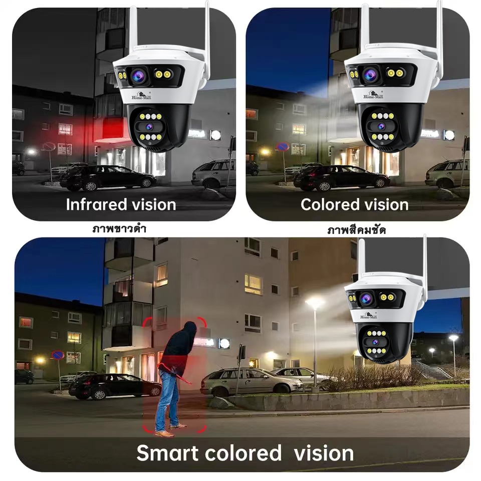 Homemall กล้องสองเลนส์ WiFi หน้าจอคู่ 2กล้อง ดูพร้อมกันได้ color full hd 8ล้านพิเซลล กลางคืนภาพสี