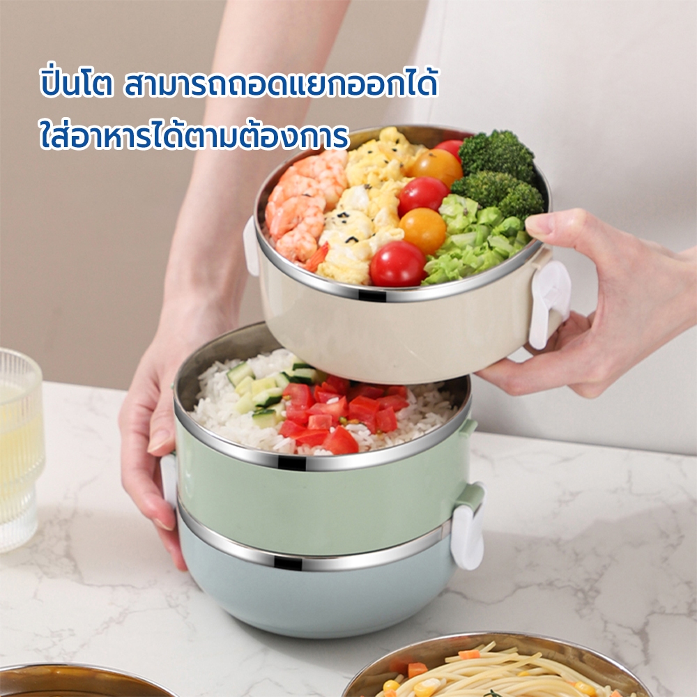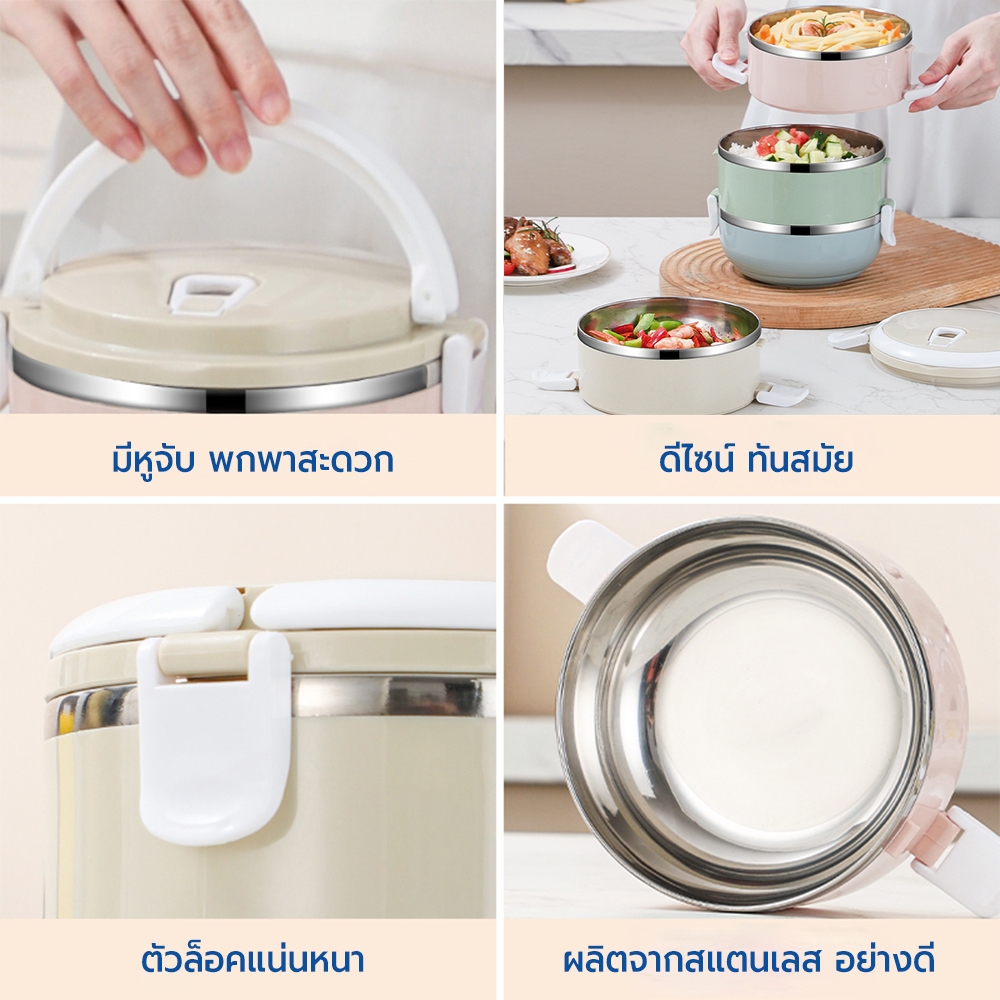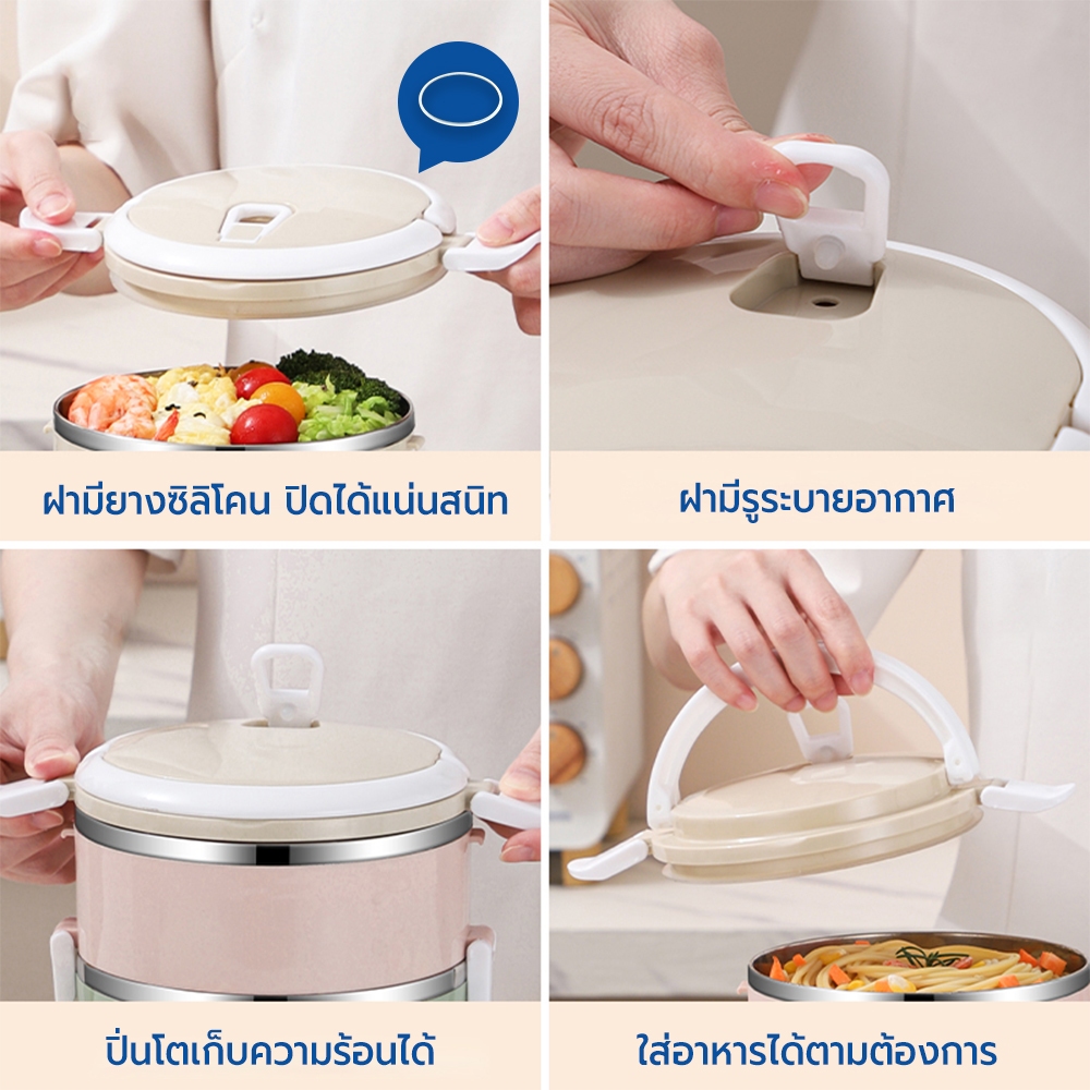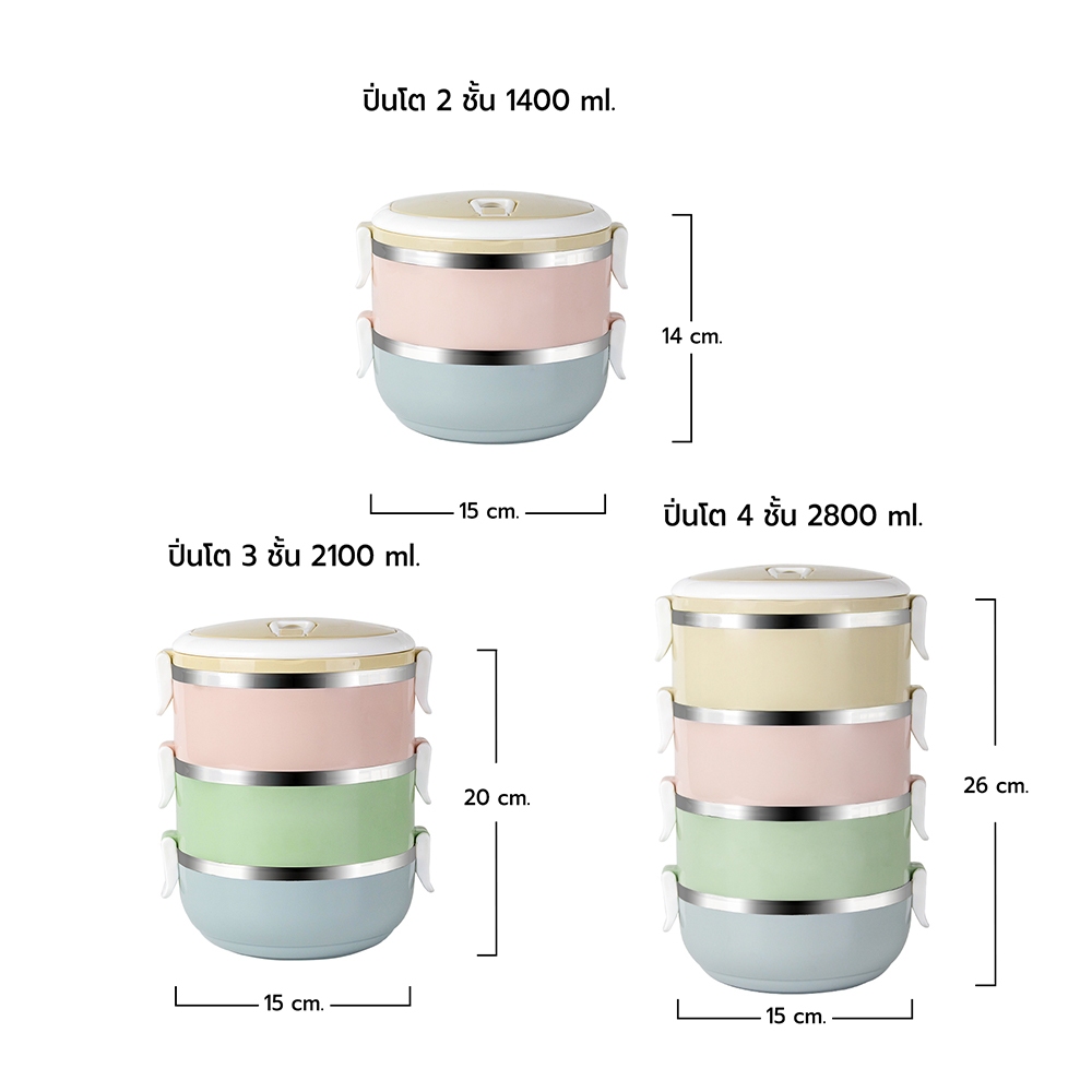 RRS ปิ่นโต เก็บความร้อน 2/3/4 ชั้น กลม 1400/2100/2800 ml. สีพาสเทล