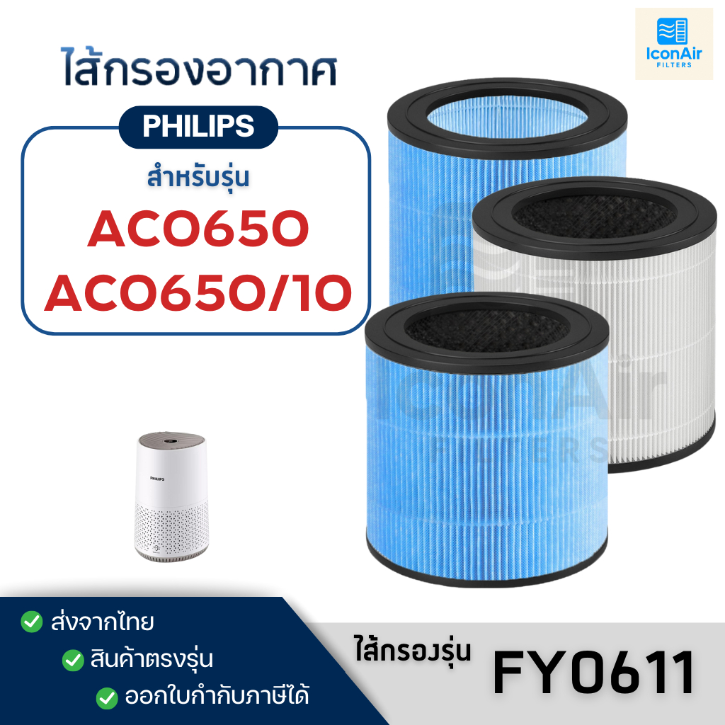 ไส้กรองอากาศ Philips รุ่น AC0650 Air Purifier Filter FY0611/30 กรองฝุ่น pm2.5