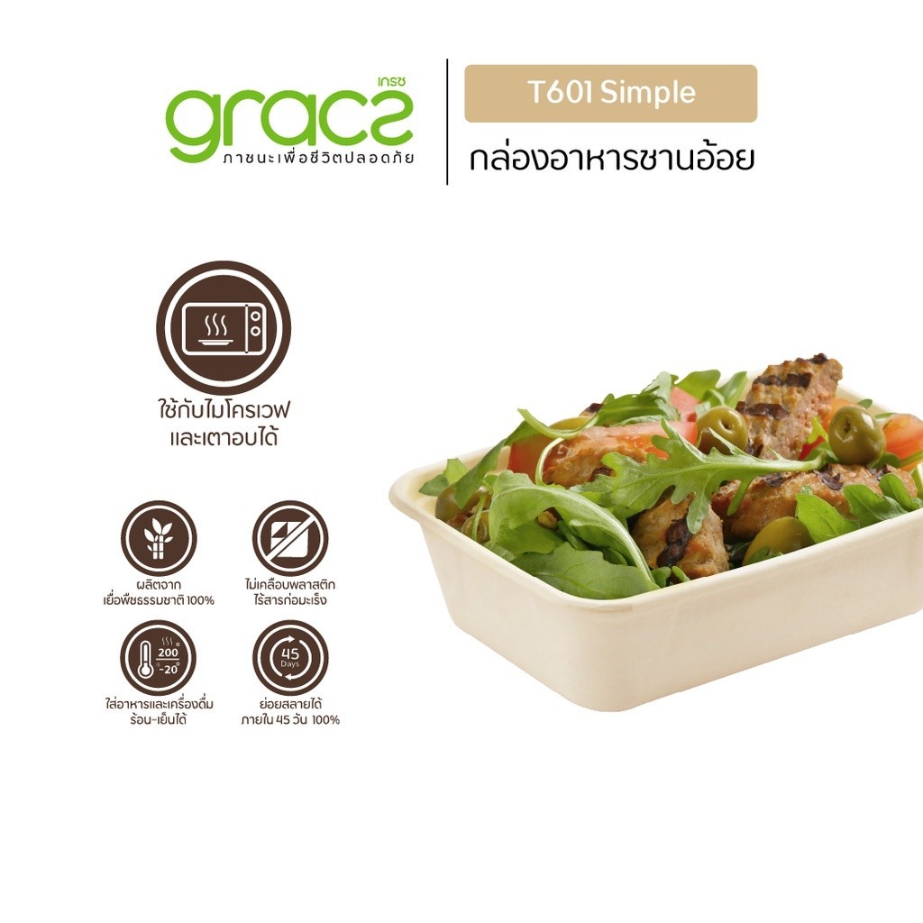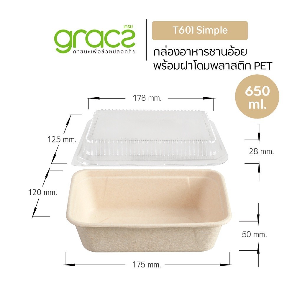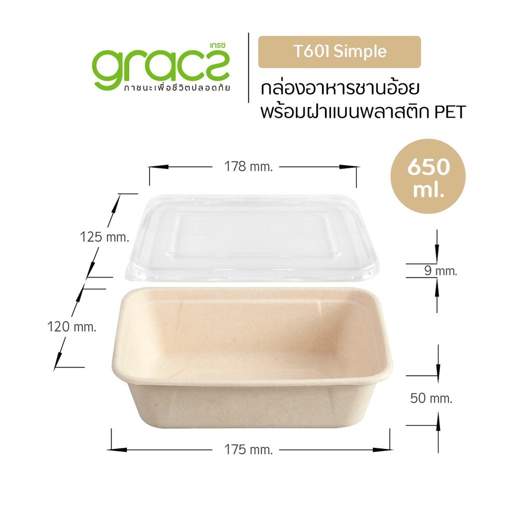 (แพค)GRACZ กล่องอาหาร เบอเกอรี่ จากชานอ้อย มีหลายช่องพร้อมฝาใส ขนาด145-1000 มล. เกรซ เข้าไมโครเวฟได้