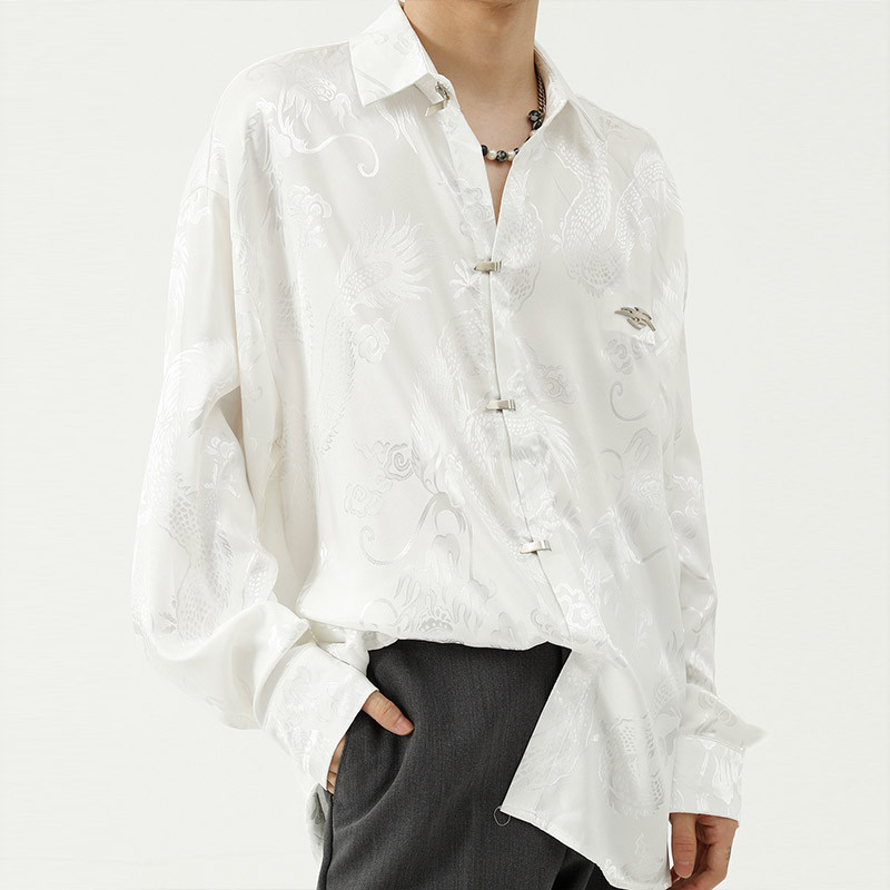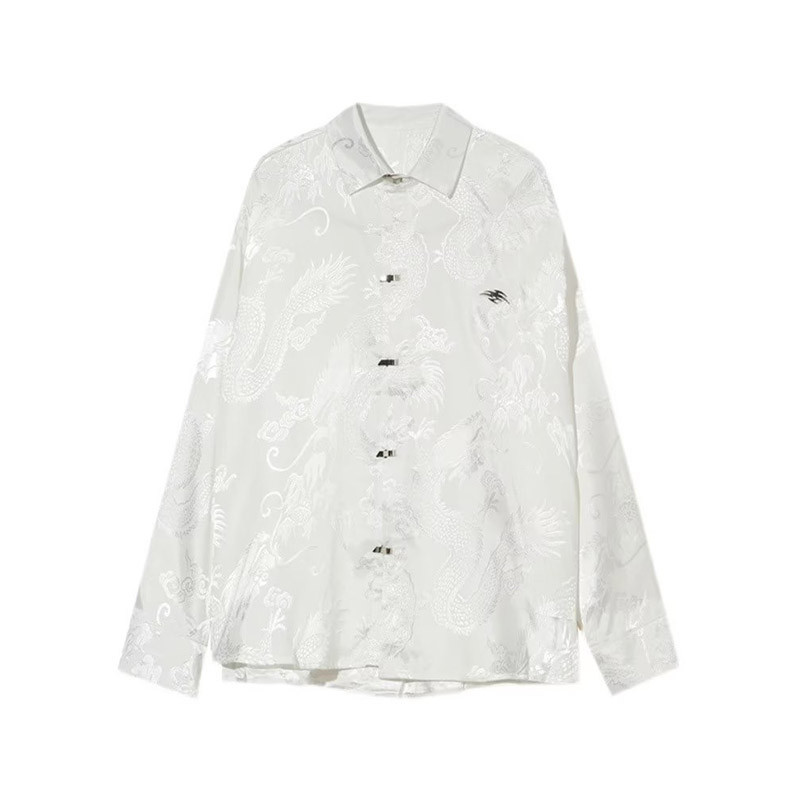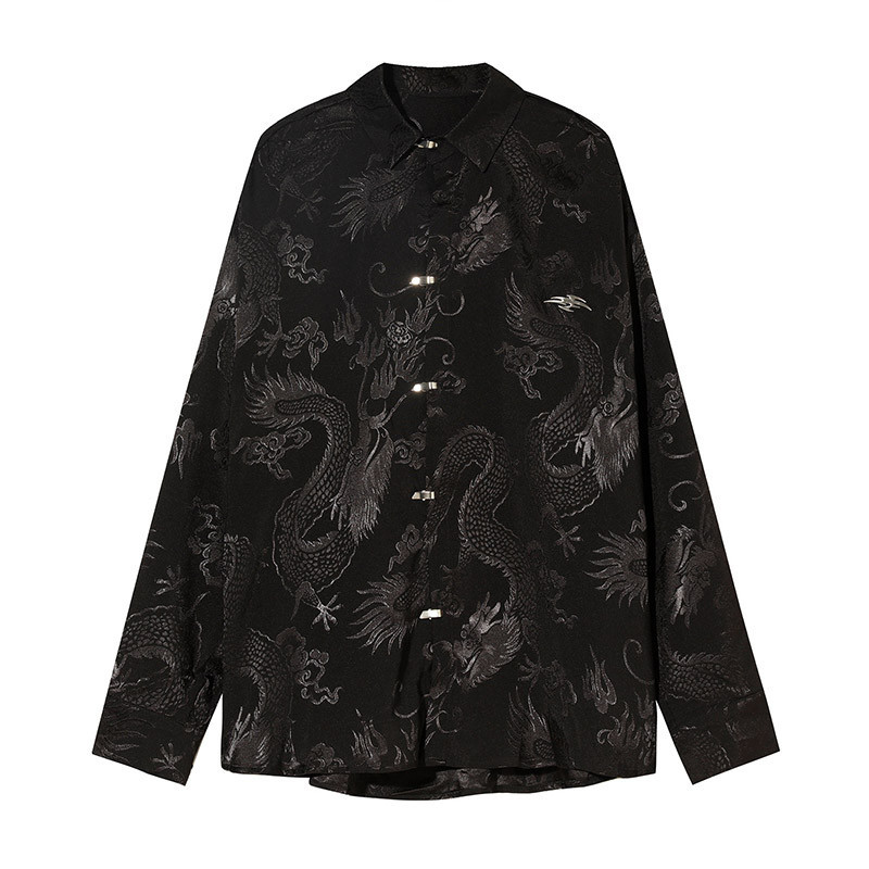 GKSSS เสื้อแขนยาว ผ้าแจ็คคาร์ด ทรงหลวม ลายมังกร สไตล์จีน สีพื้น ทันสมัย สําหรับผู้ชาย