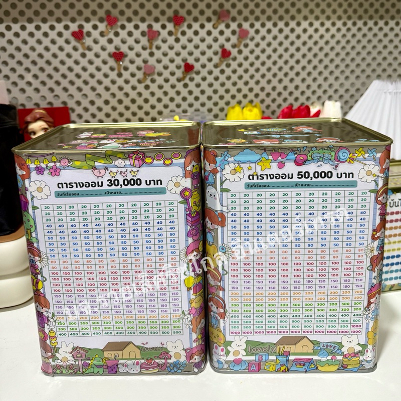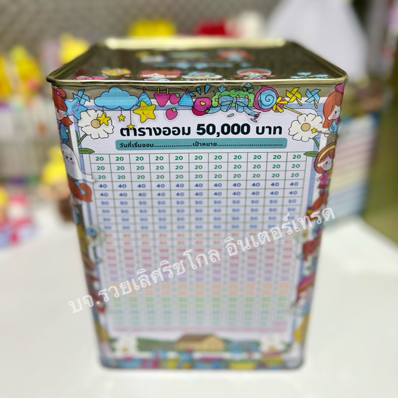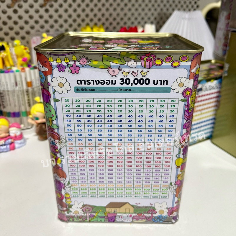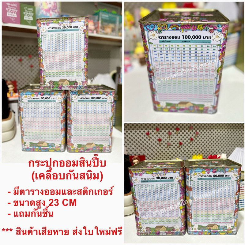 กระปุกออมสินปี๊บทรงสูงทึบ 23 CM พร้อมตารางออมและสติกเกอร์ แถมซองกันชื้น