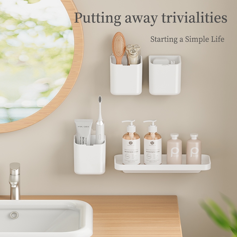 GONQIN กล่องเก็บของในห้องน้ํา กล่องเก็บของติดผนัง ยาสีฟัน แปรงสีฟัน กล่องเก็บหวี