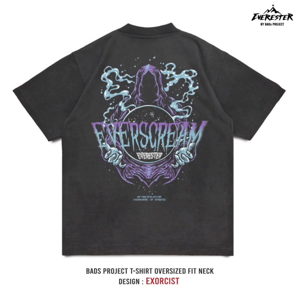 EVERESTER เสื้อคอฟิต อก 42"- 52" ฟอก เฟดเทาดำ Heavy Cotton 100% Oversize รุ่น Exocist / ชาย FED