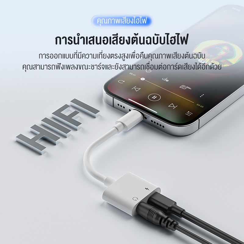 BASIKE ตัวแปลง 2 in 1 Headphone adapter สายแปลงหูฟัง หางหนู iP aux 3.5mm ชาร์จและอะแดปเตอร์เสียง