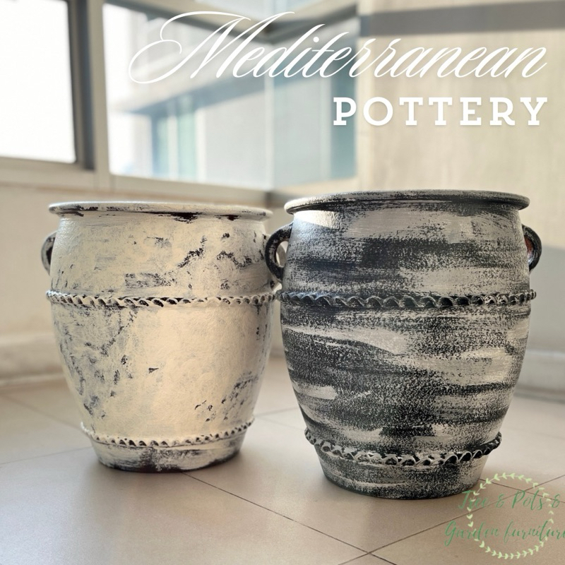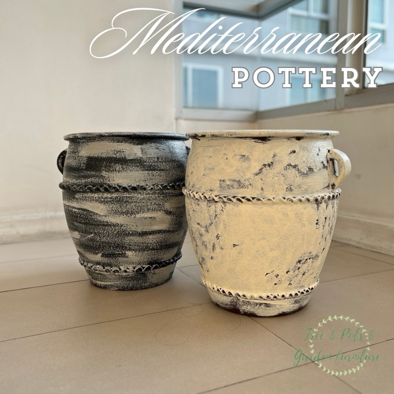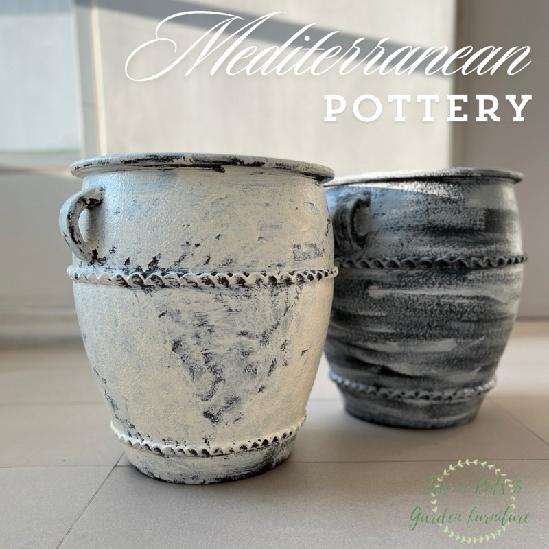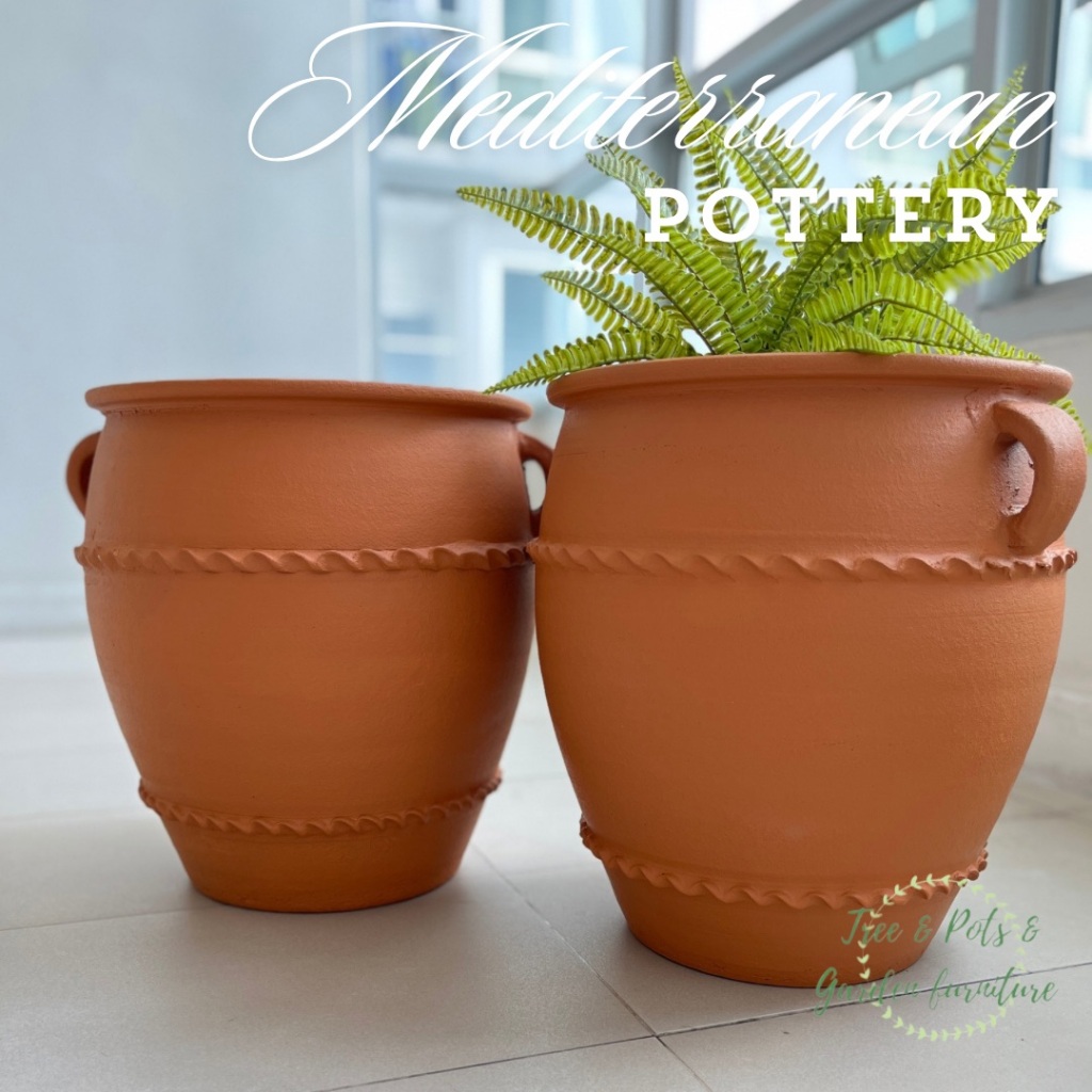 กระถางดินเผาทรงไหมีหูจับขนาดใหญ่ 38x40 ซม. กระถางดินเผาสไตล์เมดิเตอร์เรเนียน ระบายน้ำดี สวยค่ะ