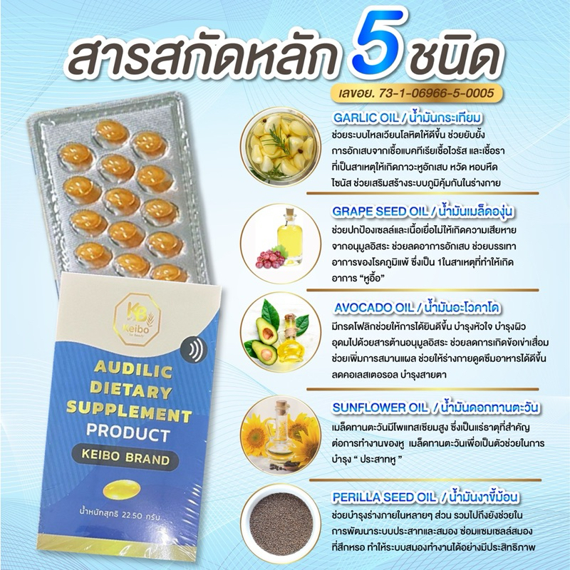 วิตามินบำรุงหู เคโบ๊ะ Keibo น้ำในหูไม่เท่ากัน เชื้อราในหู บ้านหมุน หูอื้อ หูตึง (1 กล่อง30 เม็ด)