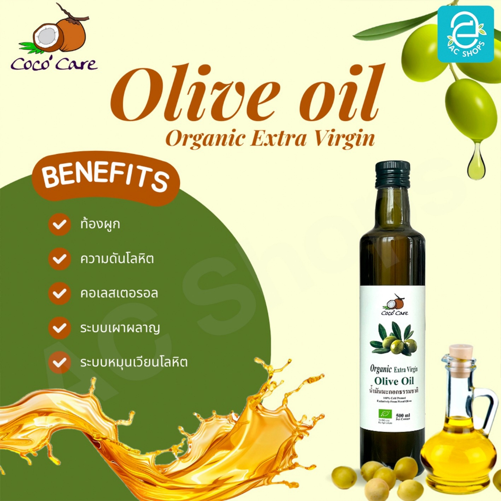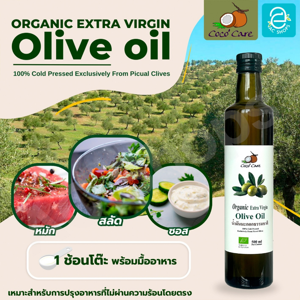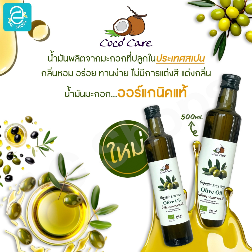 Organic น้ำมันมะกอกสกัดเย็นออร์แกนิค ขนาด 500 ml. ตรา โคโค่ แคร์ - Coco' Care Extra Virgin Cold Pressed Olive Oil