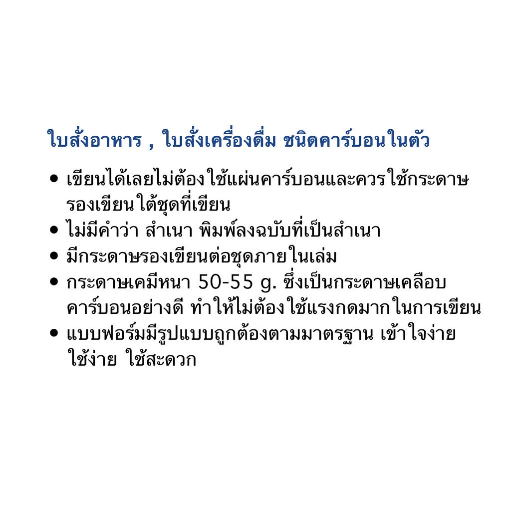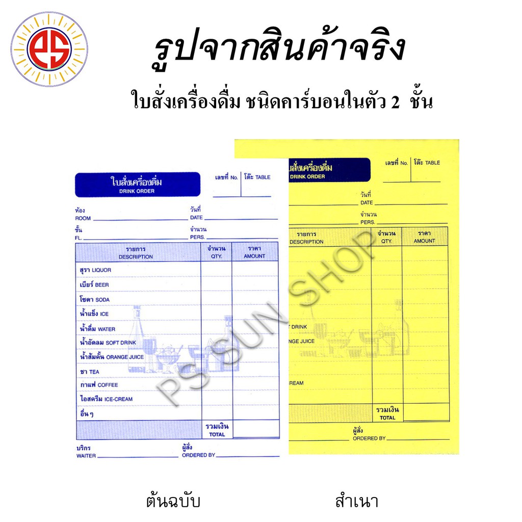 24 เล่ม ใบสั่งเครื่องดื่ม ชนิดคาร์บอนในตัว 2 ชั้น PS SUN