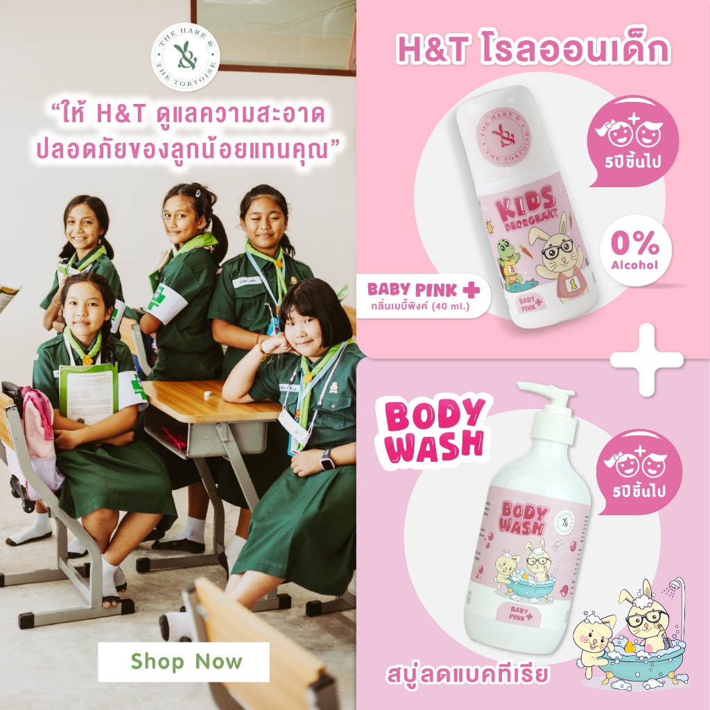 H&T โรลออนเด็ก ไม่มีกลิ่น ไม่มีแอลกอฮอล์ ไม่มีพาราเบน ลดกลิ่นตัวได้ ใช้กับเด็กผิวแพ้ง่ายมาก ผ่าน อย. ขนาด 40 มล.