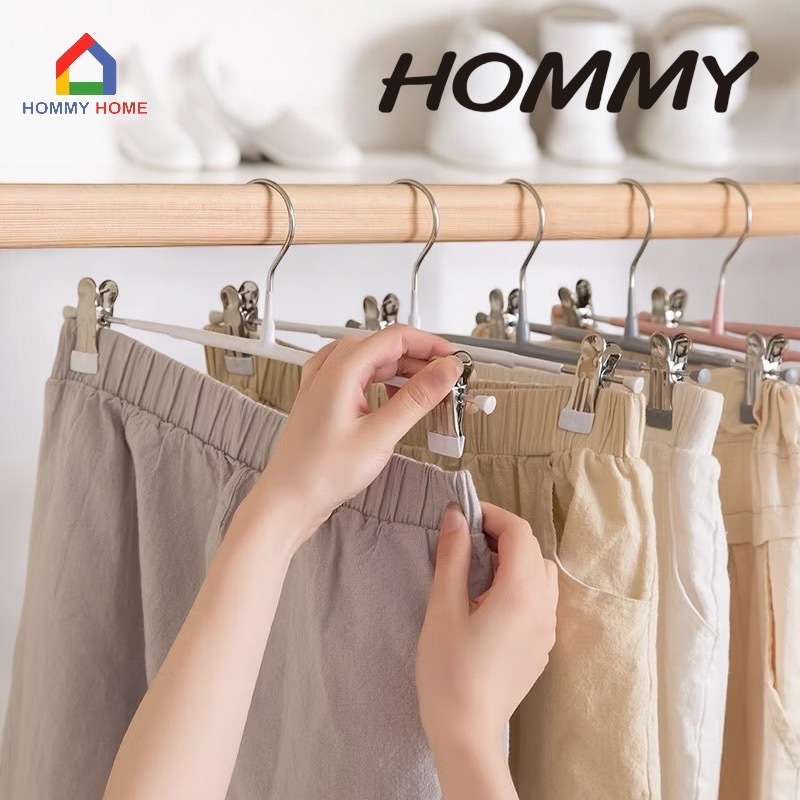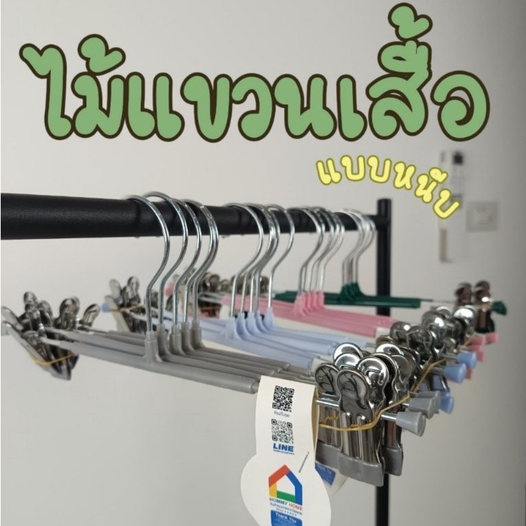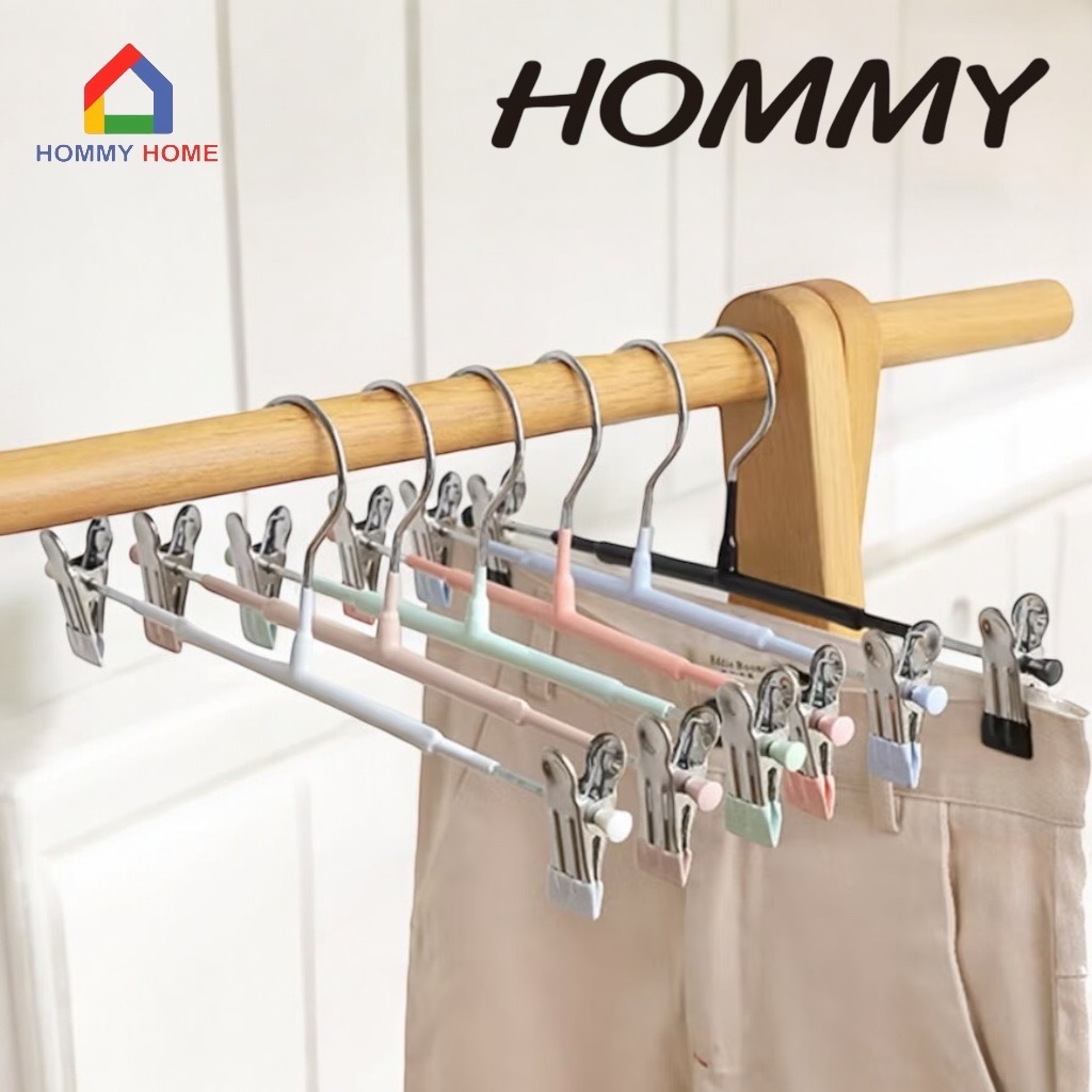 Hommy (1แพ็ค มี 5ชิ้น) ไม้แขวนแบบหนีบผ้า ไม้สเเตนเลส เคลือบซิลิโคน ป้องกันสนิม แข็งแรงทนทาน Q-10#023..
