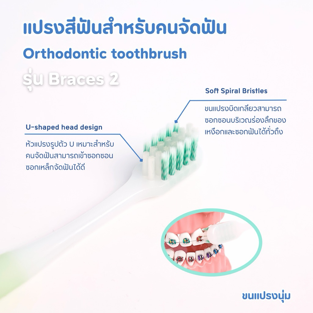 OBECON แปรงสีฟัน สำหรับคนจัดฟัน สีเขียว 1 ด้าม รุ่นเบรสทู B2