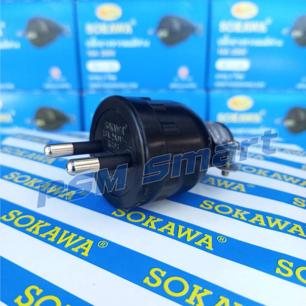 SOKAWA S-308 มอก. ปลั๊กยางตัวผู้ 2ขากลม ทองเหลืองแท้(12ชิ้น/ยกกล่อง24ชิ้น)