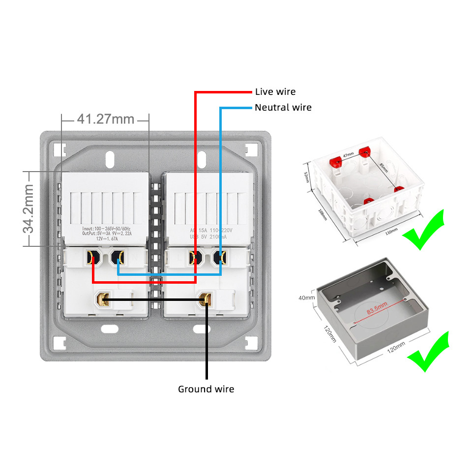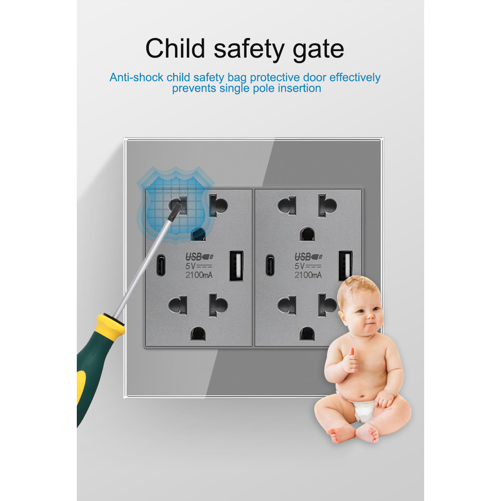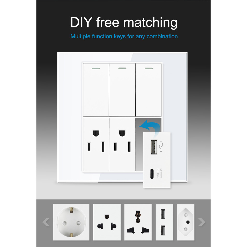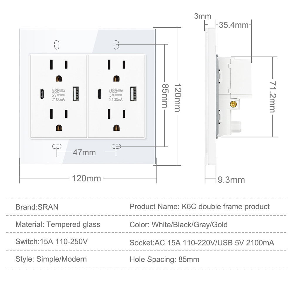 VISWE ซ็อกเก็ตสากลผนังและสวิตช์ไฟ ขนาด 120*120 มม. สีดำ กระจกนิรภัย ซีรีย์ K6C