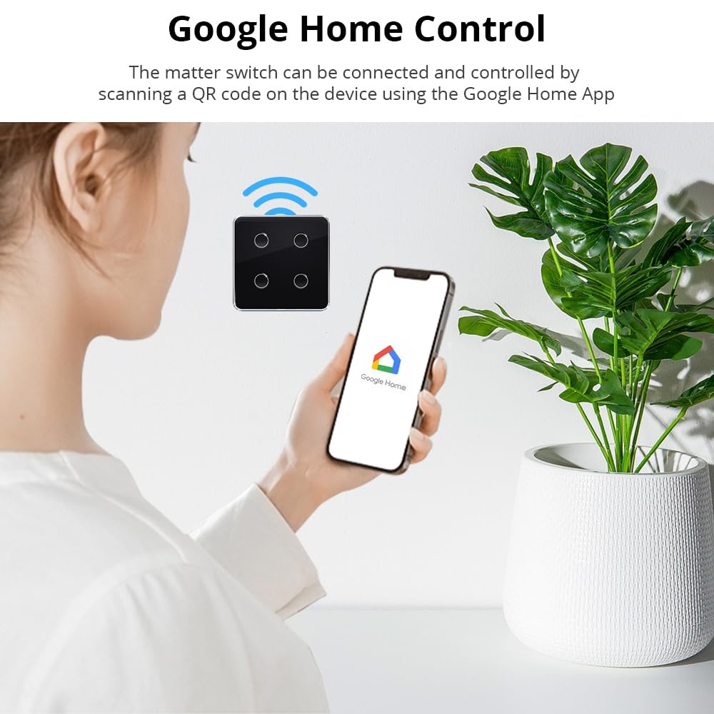 Zemismart Matter สวิตช์ไฟ,Matter WiFi Switch Neutral Touch Glass Switch,ทํางานร่วมกับ Siri Google Voice SmartThings Homekit App Control,1/2/3/4 Gang,สวิตช์สีดํา/สีขาว