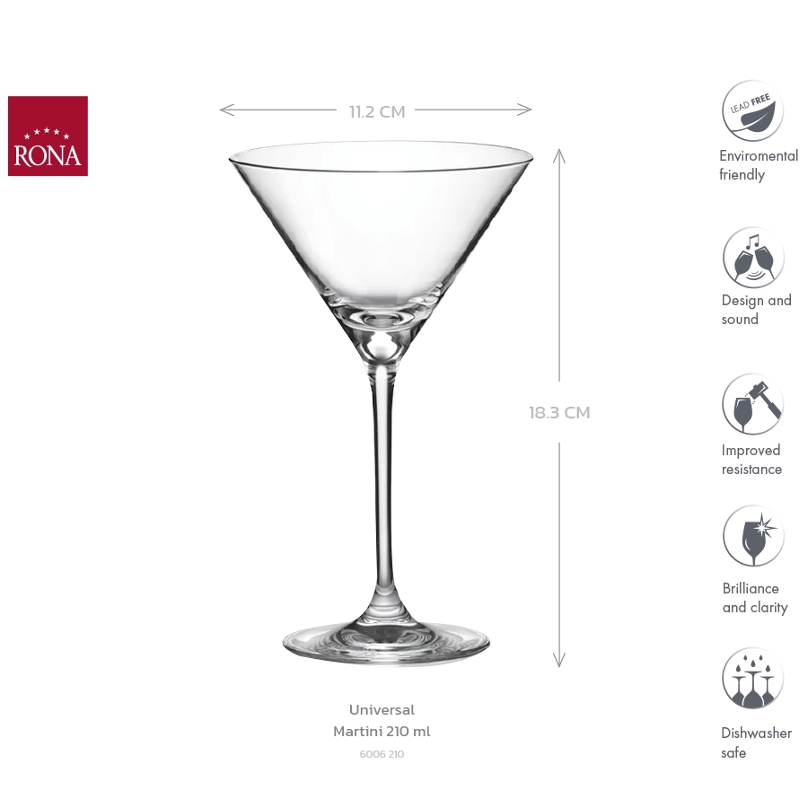 แก้วค็อกเทล มาร์ตินี่ Rona Universal 210 ml (1 ใบ)