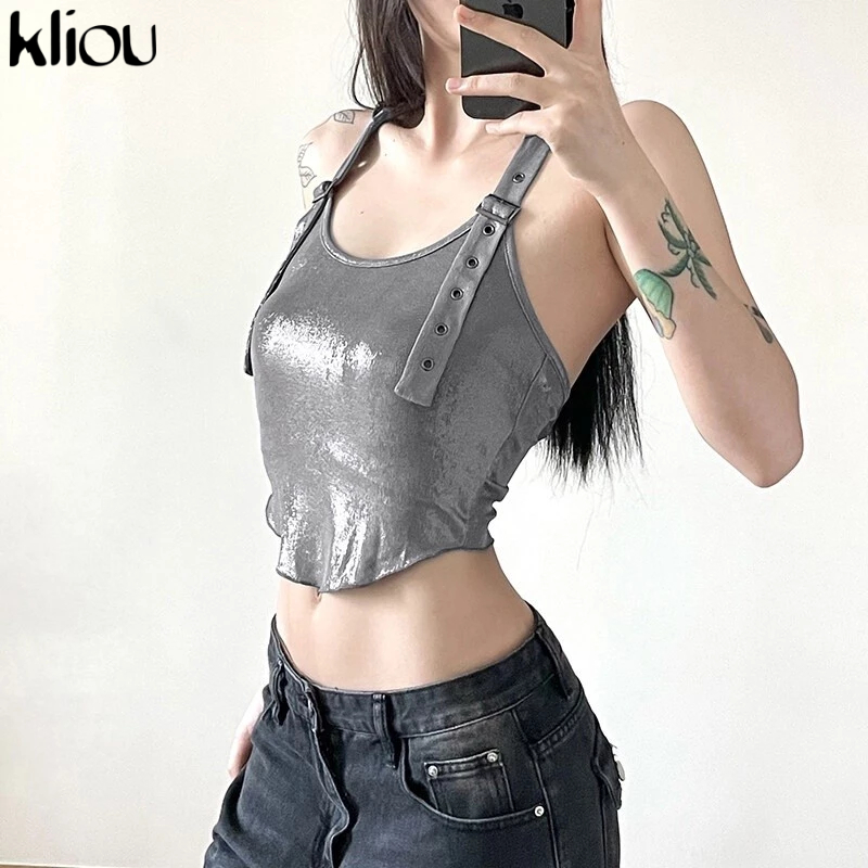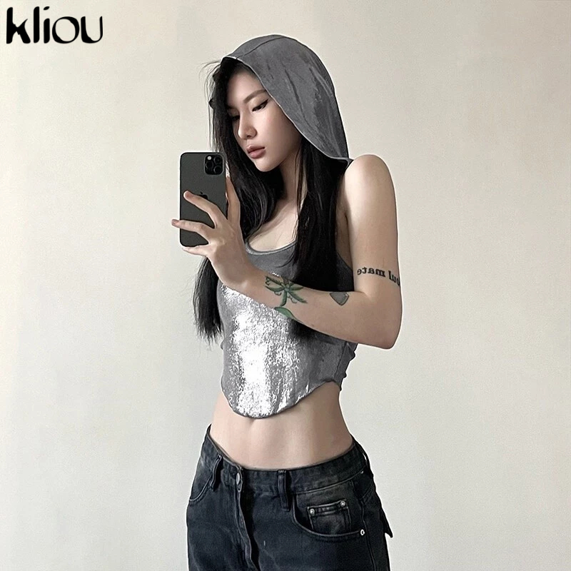 Kliou แฟชั่น Cool เยาวชนผู้หญิงเซ็กซี่แขนกุด Camisoles Backless Hooded Tanks Crop Tops Slim Fit เสื้อกั๊กฤดูร้อนธรรมดา