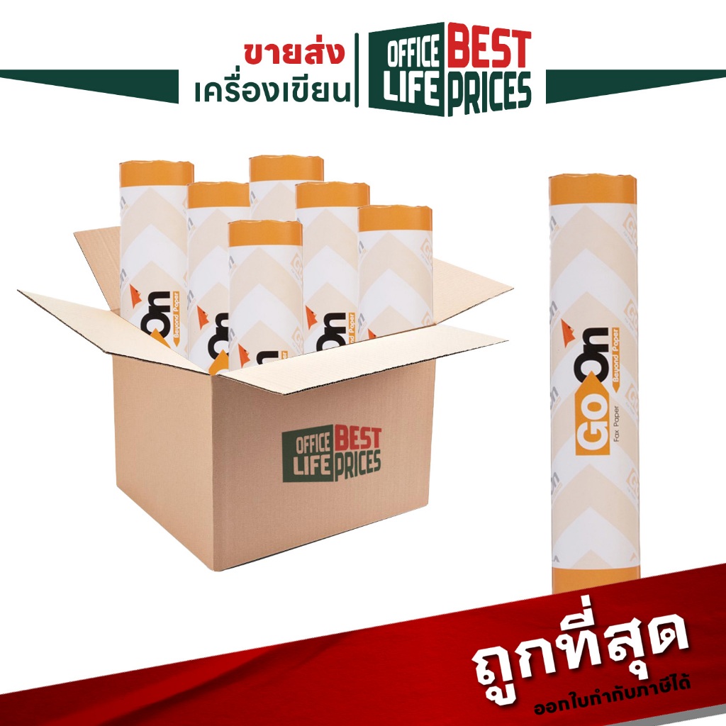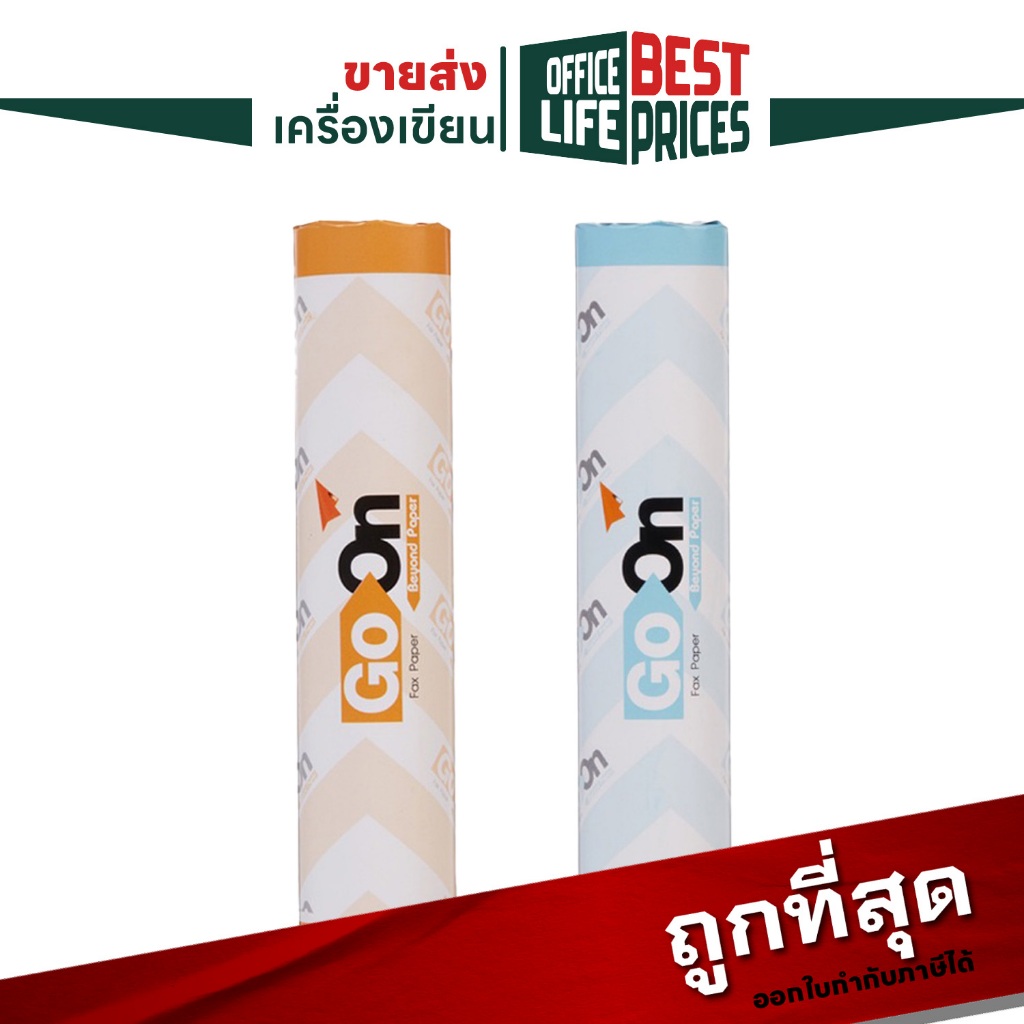 Go On (โกออน) กระดาษแฟกซ์ กระดาษ Fax ทนความร้อน รุ่น 210 / 216 ยาว 30 หลา แกน 1 ซม. ห่อฟ้า ห่อส้ม ( 24 แถว / ยกกล่อง )