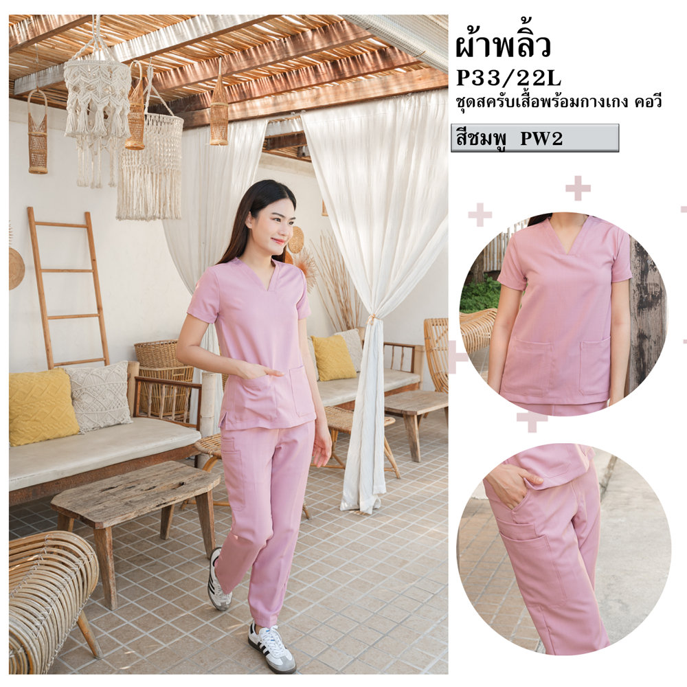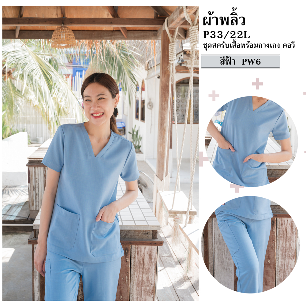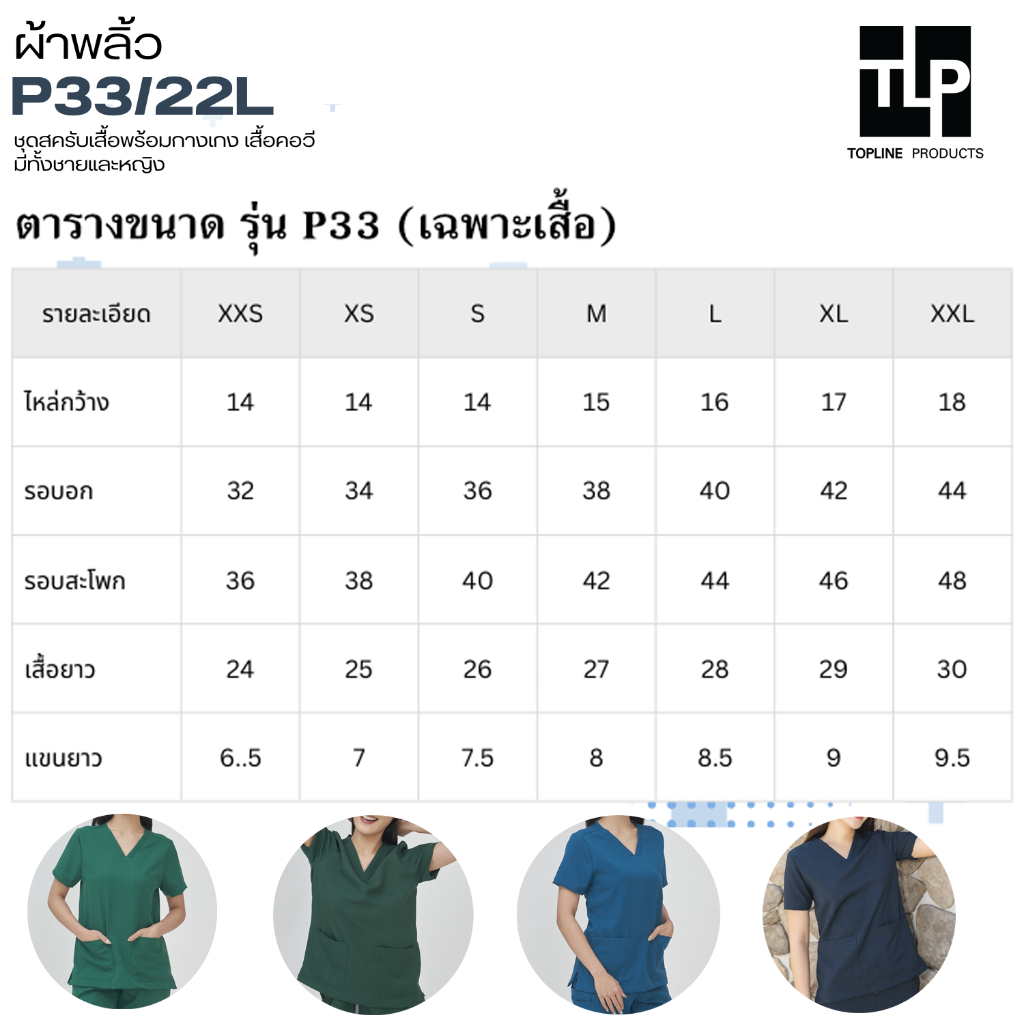 (สินค้าสั่งปัก) toplineproducts เสื้อสครับแพทย์ (ชุดผู้หญิง) ผ้าพลิ้ว Plew รุ่นP33 ชุดสครับหมอ พยาบาล