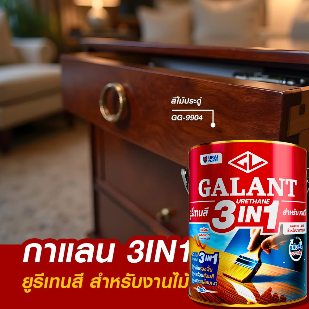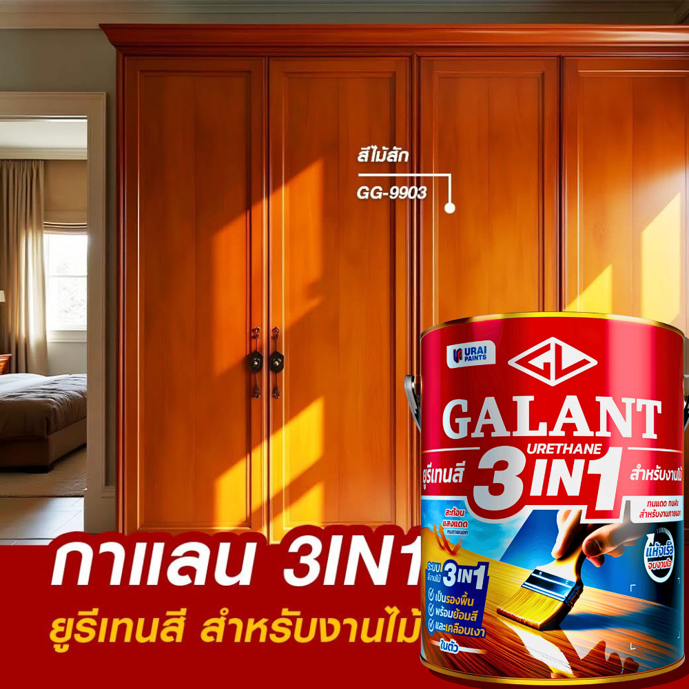 กาแลนท์ ยูรีเทนสี 3in1 GALANT งานย้อมสีไม้ ทาไม้กลางแจ้ง 3.5 ลิตร ไม้สัก ไม้ประดู่ ไม้มะฮอกกานี รองพื้น เคลือบเงาไม้