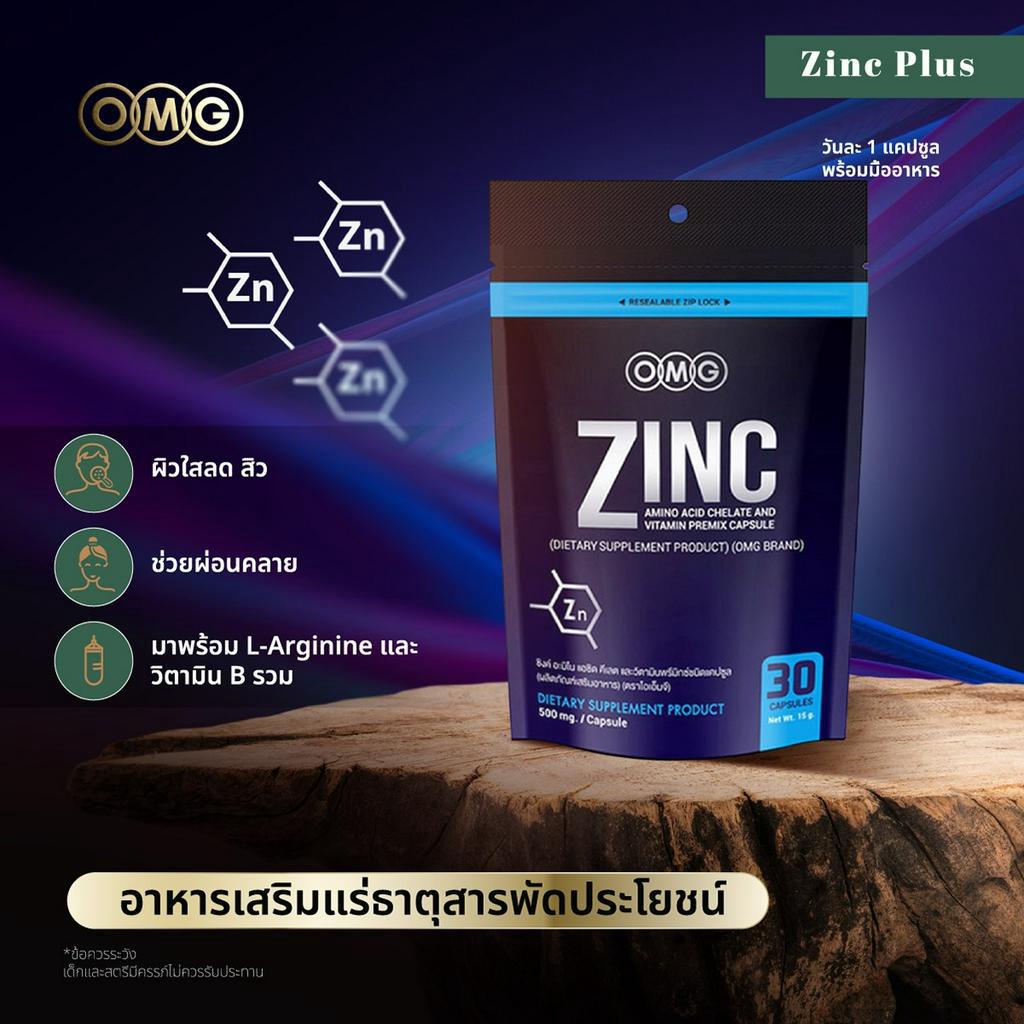 OMG Zinc Amino Acid ( 30 แคปซูล 2 ซอง ) โอเอ็มจี ซิงค์ อาหารเสริมแร่ธาตุสังกะสี (ซิงค์) แร่ธาตุที่ช่วยดูแลเรื่องผิวพรรณ