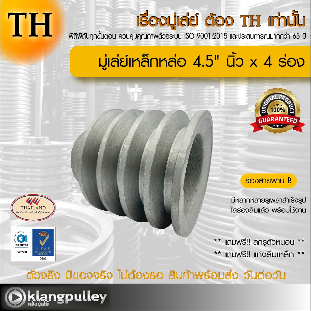 มู่เล่ย์เหล็กหล่อ Ø 4.5" นิ้ว x 4 ร่อง เกรดพรีเมี่ยม (ร่อง B) พูลเล่ย์ รถเกี่ยว TH