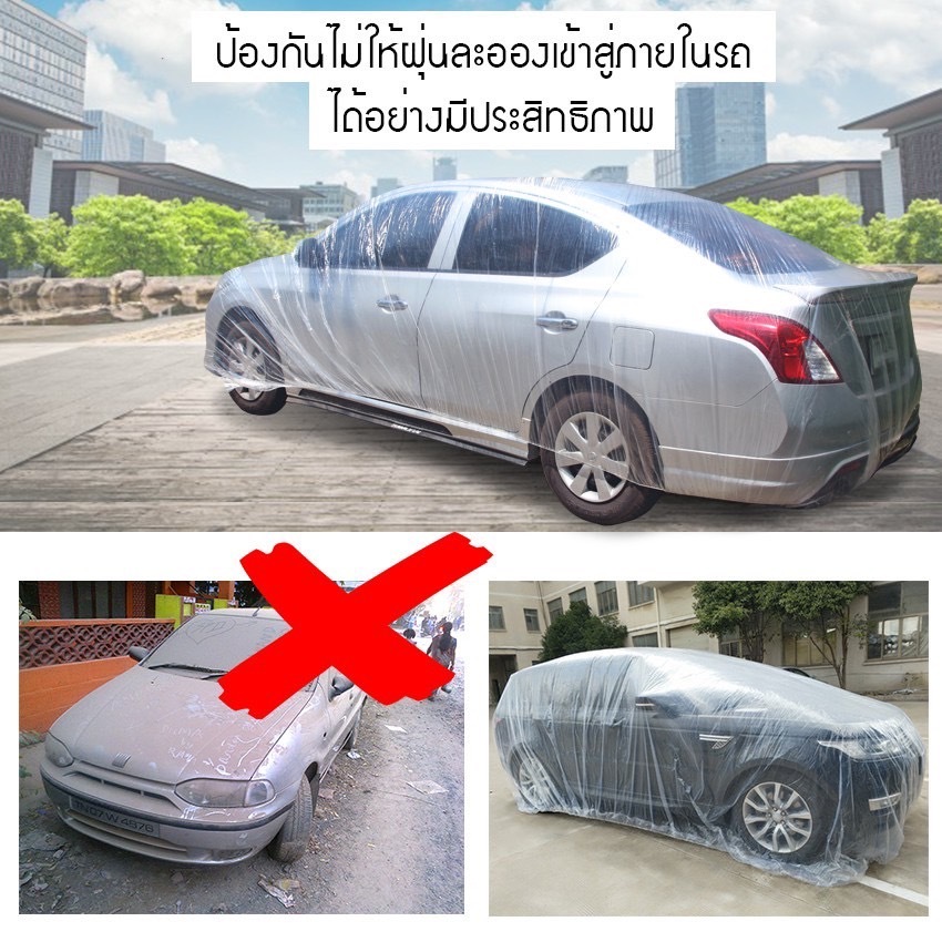 พลาสติกคลุมรถ แบบพลาสติกใส กันน้ำ100% (เกรดAพรีเมี่ยม) กันฝน กันฝุ่น ผ้าคลุมรถยนต์ พร้อมส่งจากไทย