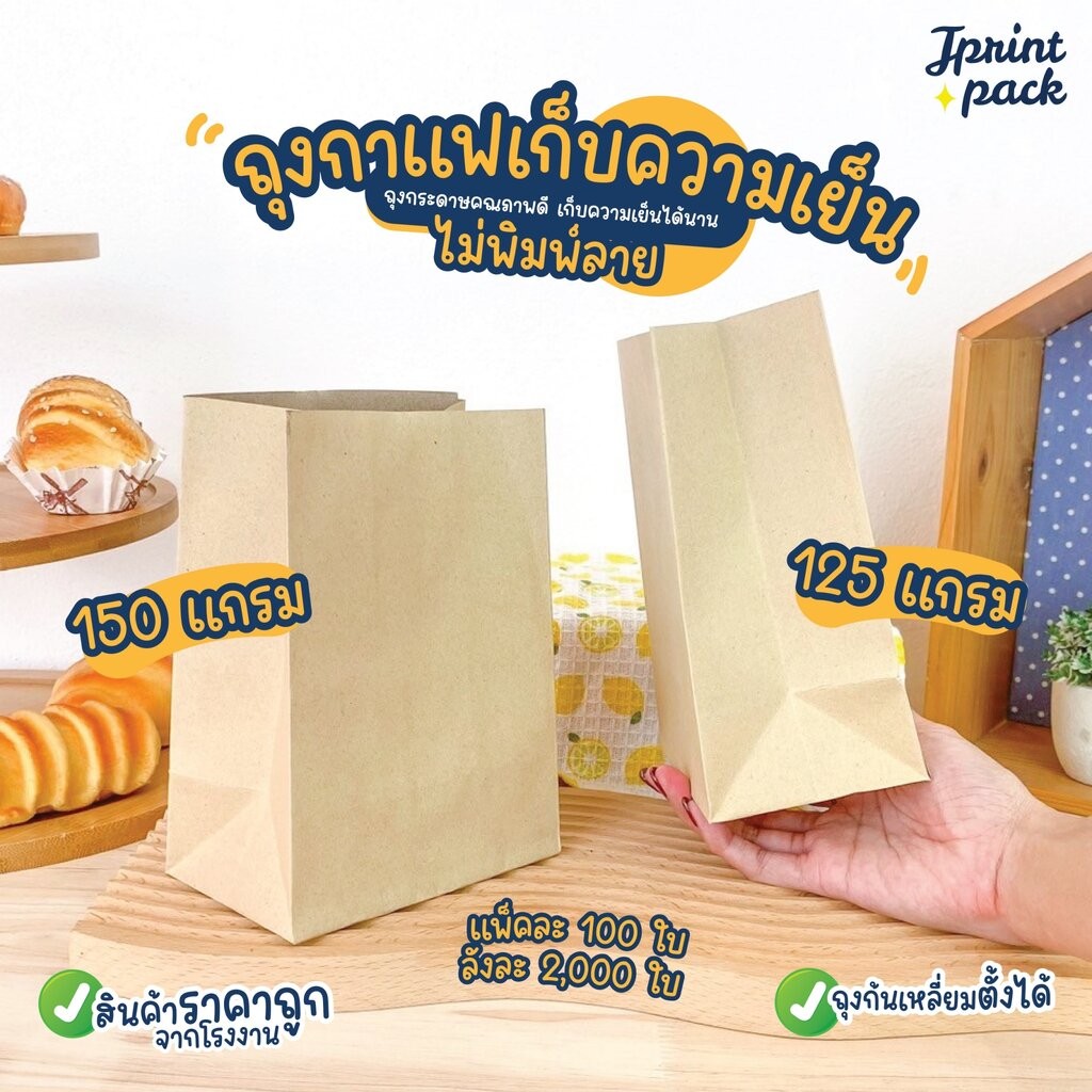 ถุงกาแฟเก็บความเย็น แบบพิมพ์ลาย/ไม่พิมพ์ลาย KI125/150แกรม (แพ็กละ100ใบ)
