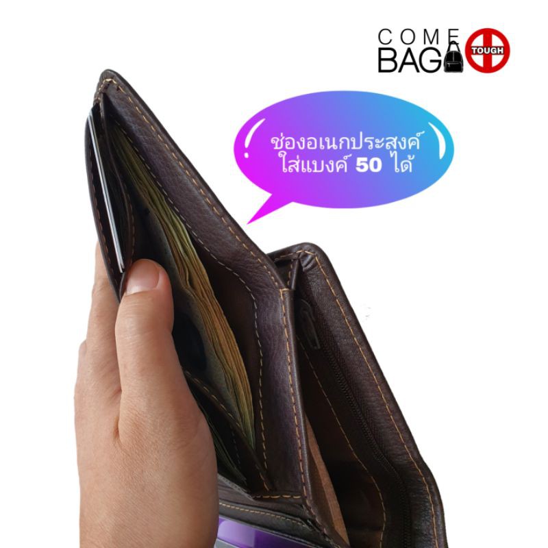 กระเป๋าสตางค์TOUGHหนังแท้ (รุ่นJUMBOทรงตั้ง) ใบใหญ่ใส่จุ 4 พับ