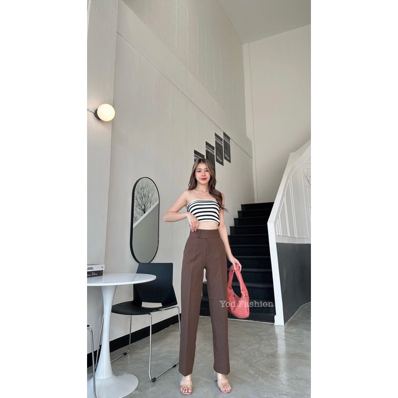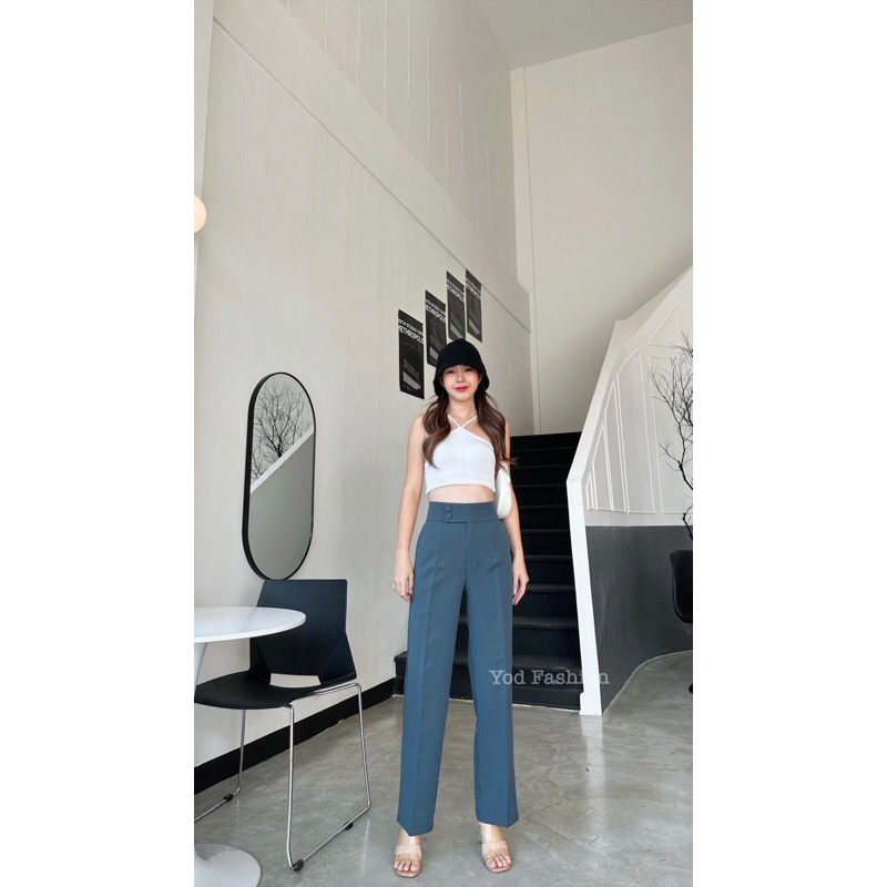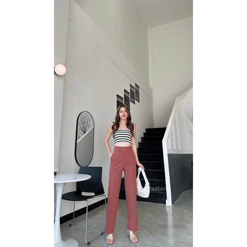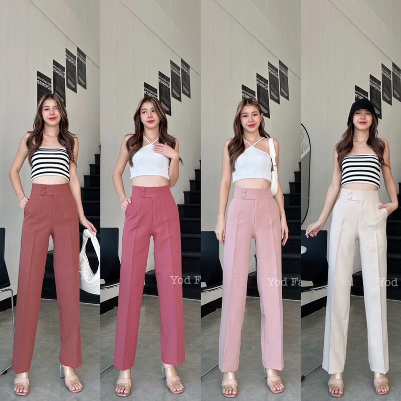 (ไซส์ S-3XL) กระดุมปั๊ม 2 เม็ด กระบอกกลาง ผ้าA80 เอวสูงเก็บหน้าท้อง พรางหุ่น ใส่แล้วขายาว