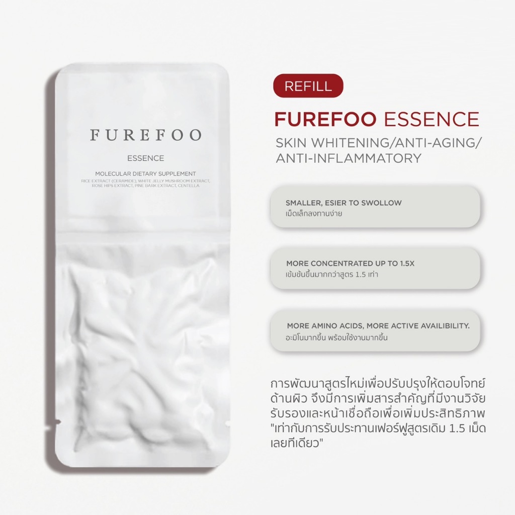 FUREFOO ESSENCE REFILL 60 TAB (ชนิดรีฟีลเหมาะสำหรับผู้ที่มีกระปุกหรือตลับอาหารเสริม)
