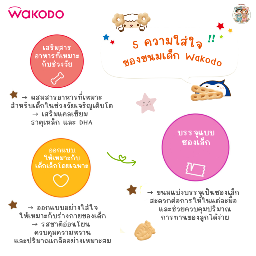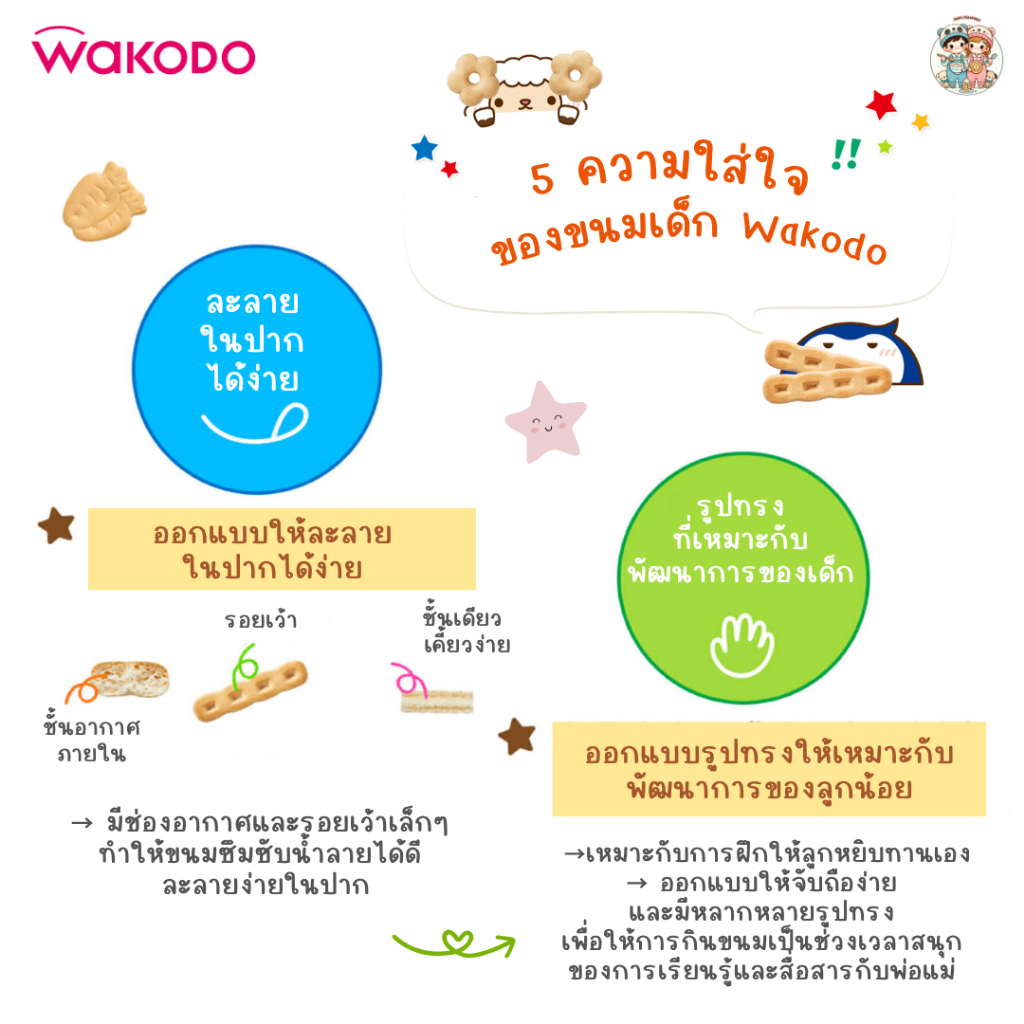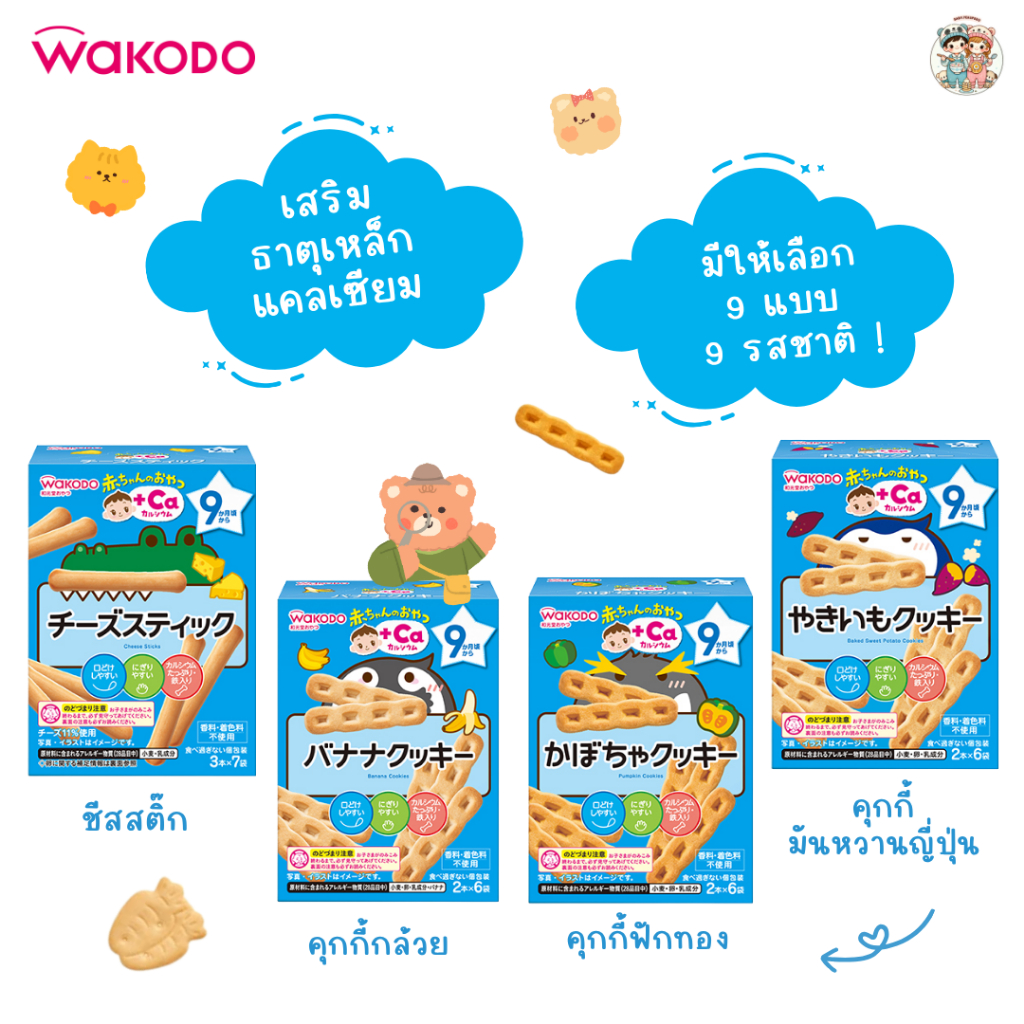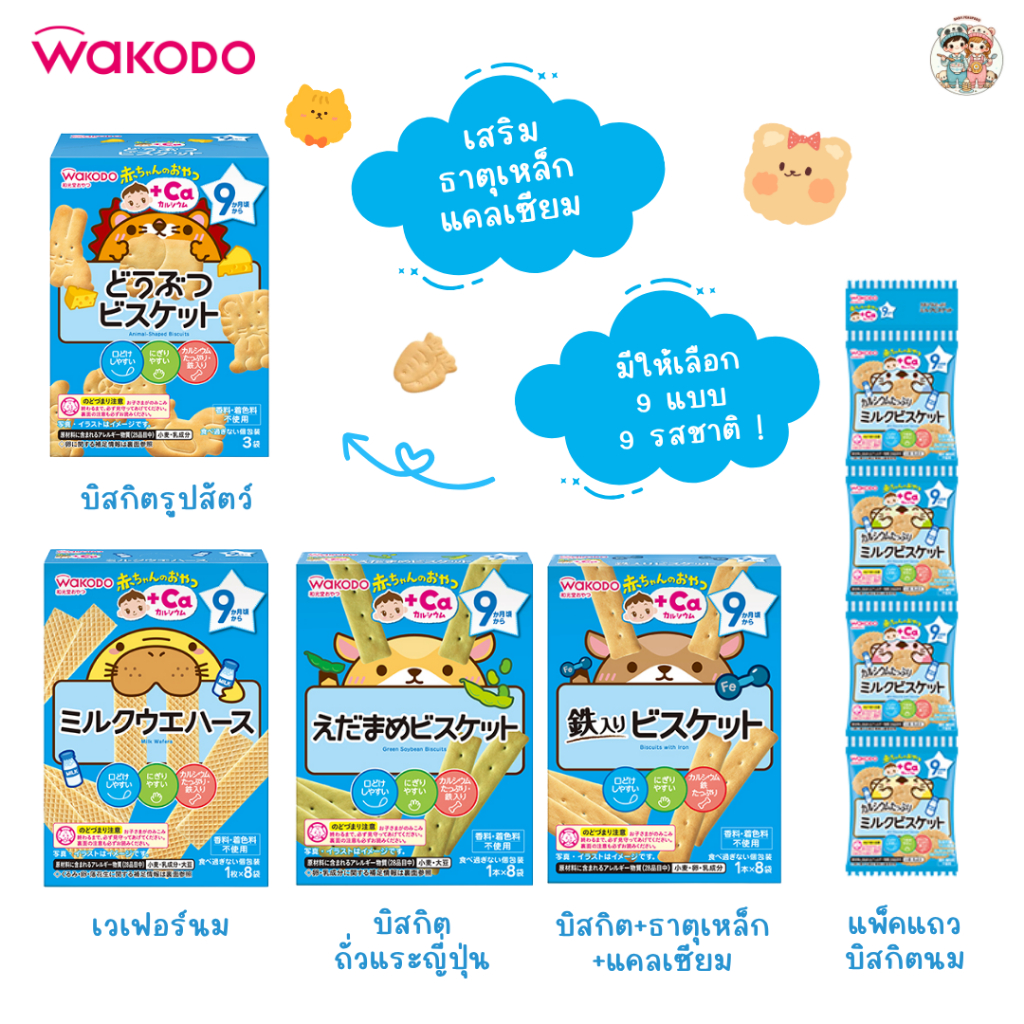 Wakodo ขนมเด็ก 9 เดือน+ เสริมแคลเซียม รสชาติอ่อนโยน ละลายในปากง่าย (นำเข้าจากญี่ปุ่น 🇯🇵)