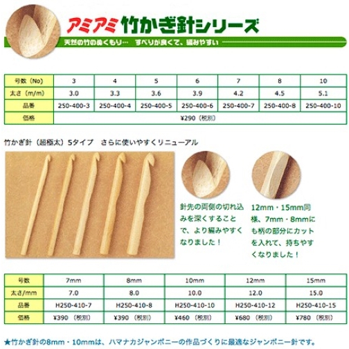 Hamanaka (HA250-400) Ami-Ami Bamboo crochet เข็มโครเชต์ไม้ไผ่แท้ Made in Japan