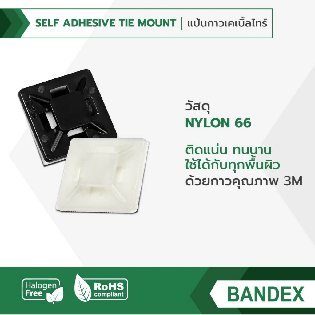 แป้นยึดสายไฟ แป้นกาวยึดสายไฟ แป้นยึดเคเบิ้ลไทร์ แป้นกาวยึดเคเบิ้ลไทร์ รุ่น TM2121-4 / TM2828-4 (100ตัว/ถุง) BANDEX