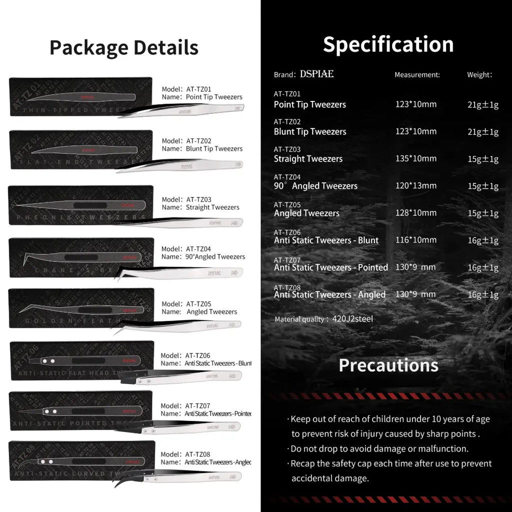 Stainless Steel Precision Tweezers By DSPIAE แหนบสแตนเลส (มีหลายรุ่น)