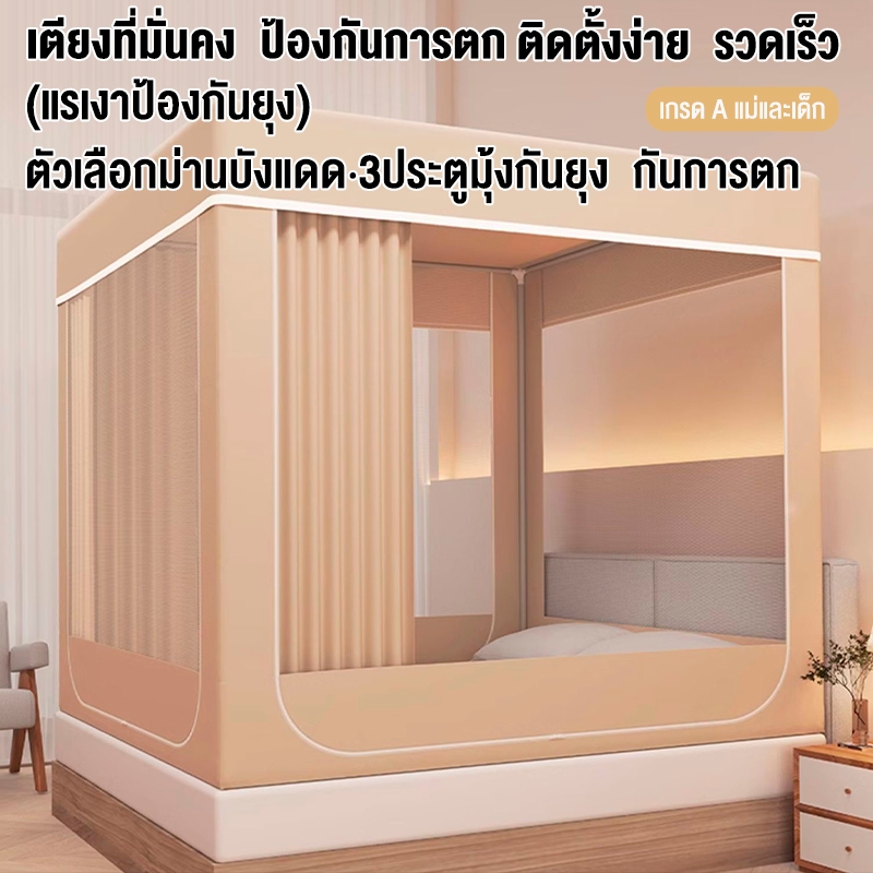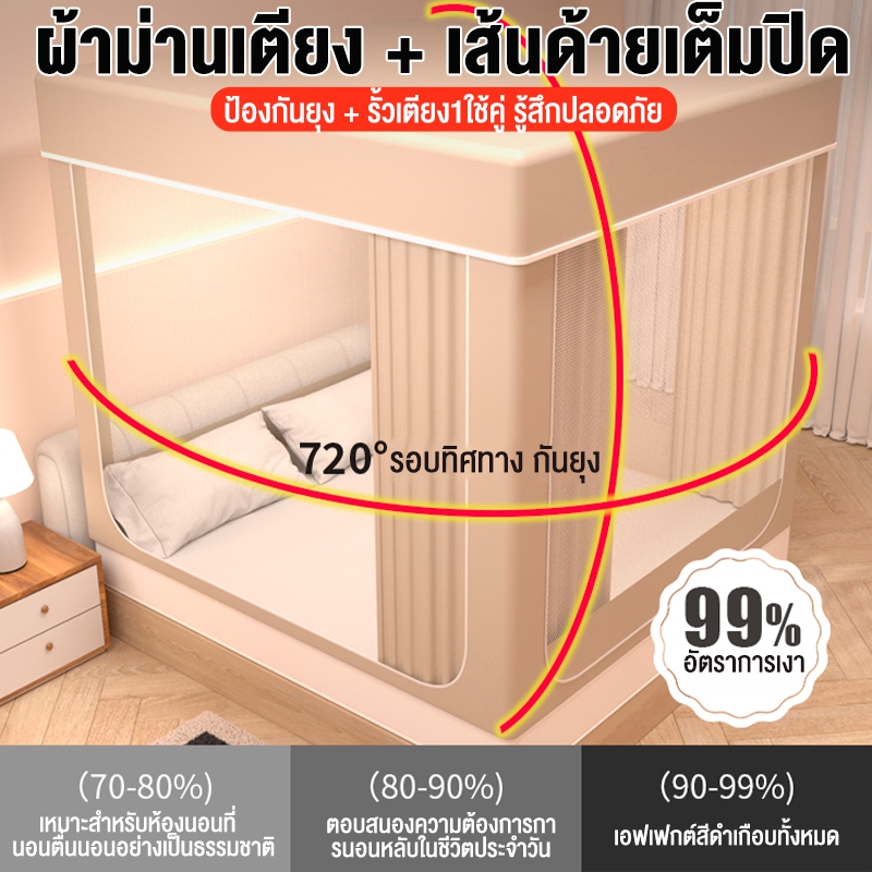 BONAS มุ้ง มุ้งครอบผู้ใหญ่ 4ฟุต 5ฟุต 6ฟุต 6.6ฟุต กันแมลง พร้อมม่านเตียงรอบมุ้ง มุ้ง มีซิป มุ้งกันยุงพับได้ สไตล์ใหม่ COD
