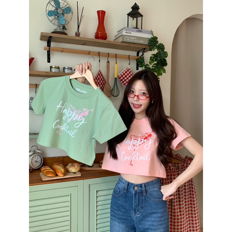 (oversize.summer) เสื้อยืดครอป Hellocrop - basic crop (พร้อมส่ง)