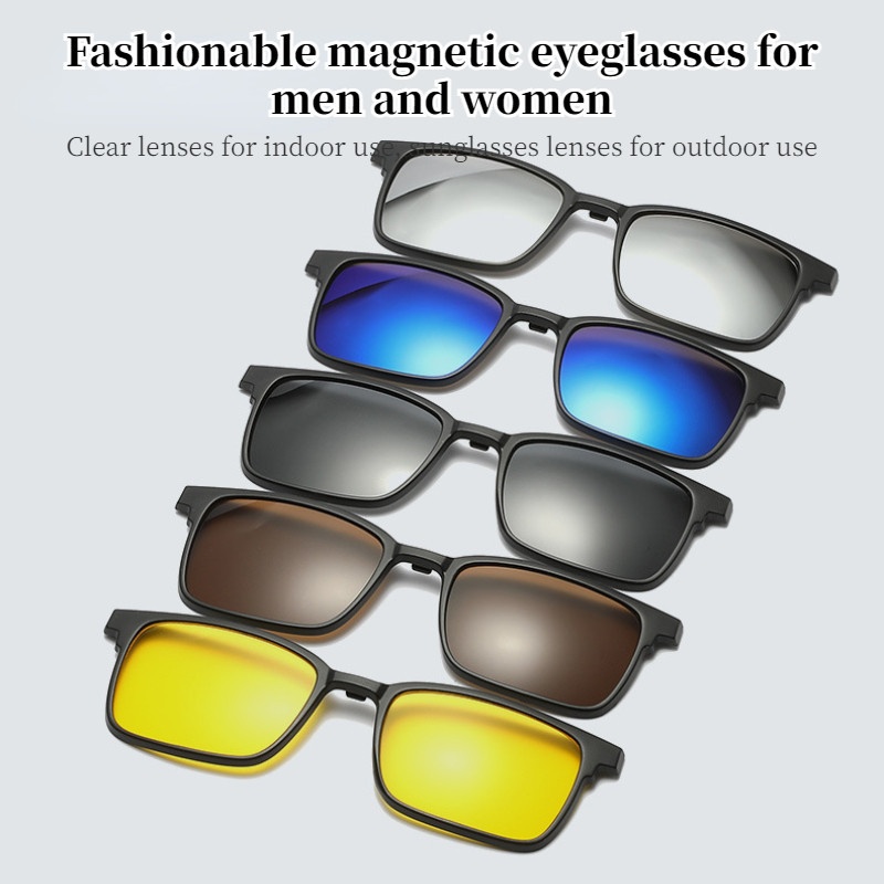 JIUERBA มีสไตล์ TR90 กลางแจ้งวินเทจกระจกแม่เหล็กโพลาไรซ์แว่นกันแดดที่มีห้าคลิปโลหะขี่จักรยานแว่นตากันแดดทนรังสียูวี