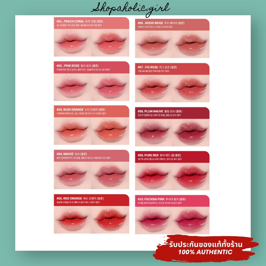 ✅แท้/พร้อมส่ง✅Heart Percent Dot On Mood Pure Glow Tint ทิ้นเนื้อฉ่ำติดทน เบาสบายปาก