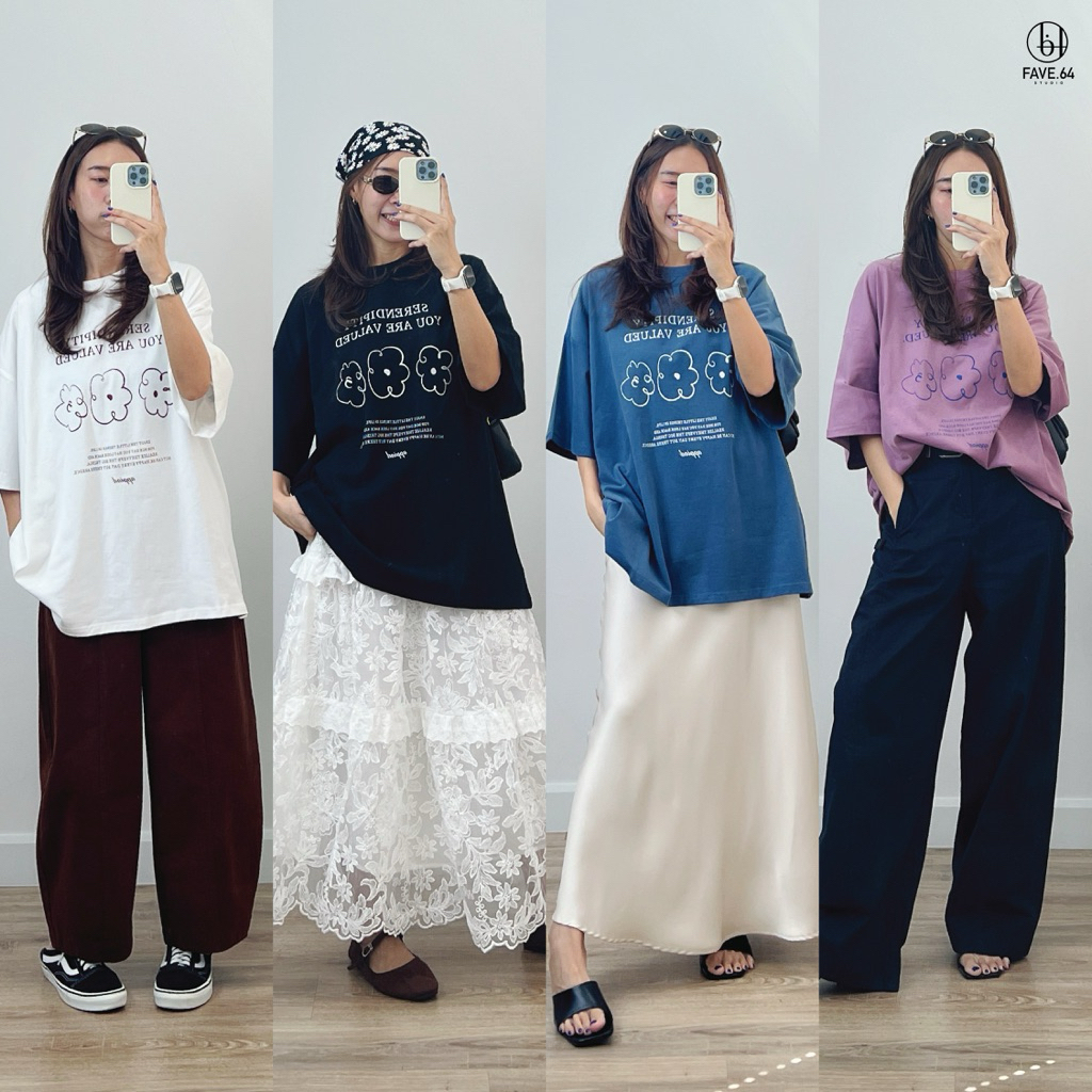 (ใช้โค้ดลด เมื่อสั่งผ่าน ShopeeVideoได้) เสื้อยืดโอเวอร์ไซส์ Oversized T-shirt - Fave.64