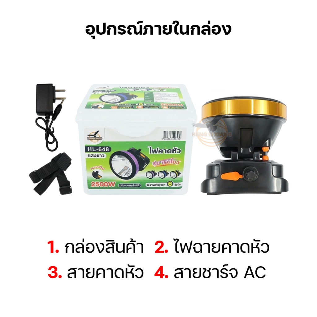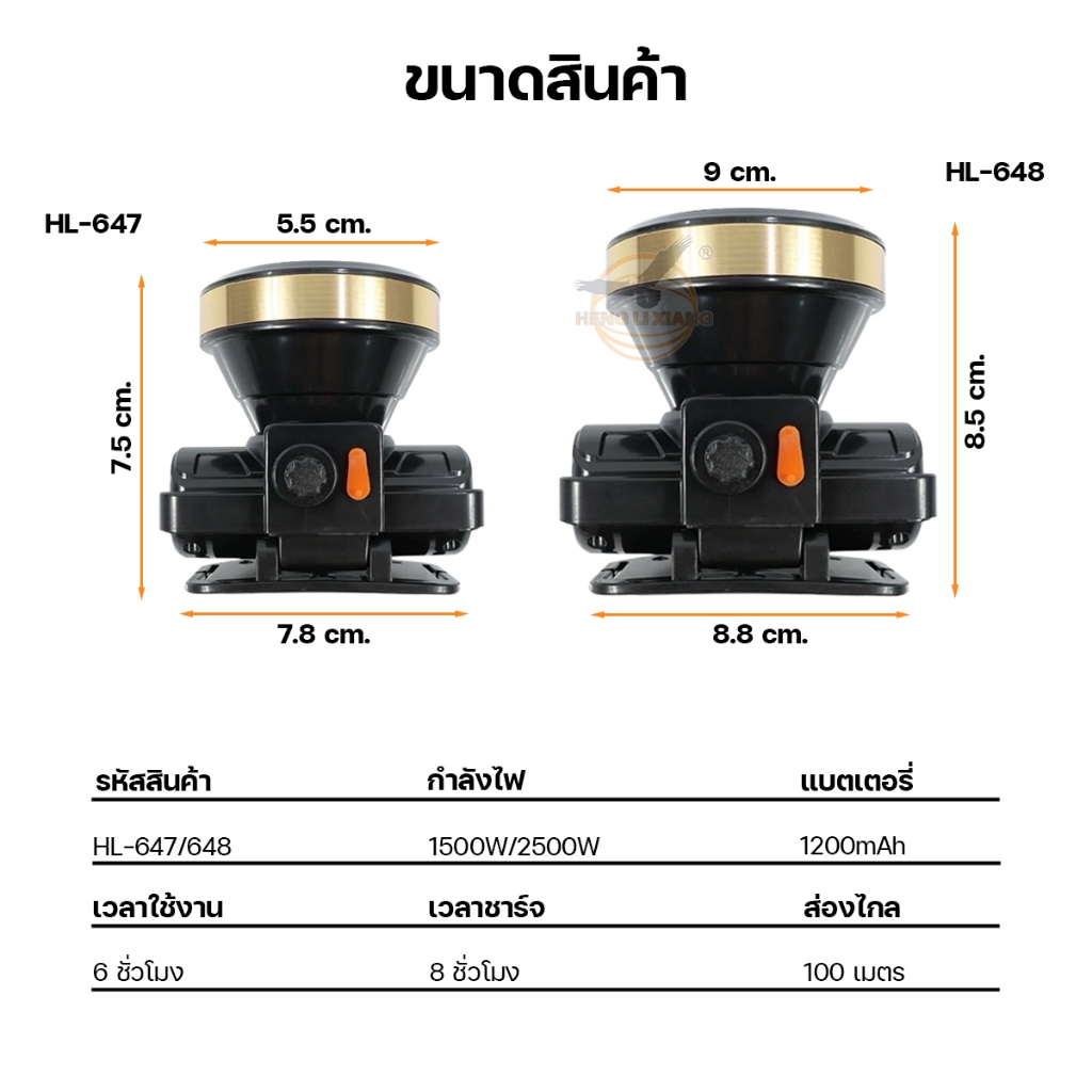 ไฟฉายคาดหัว ของแท้ ตรานก ไฟคาดหัว LED ไฟเดินป่า ไฟส่องกบ ไฟฉายชาร์จแบต กันฝน รุ่น HL-647/HL-648