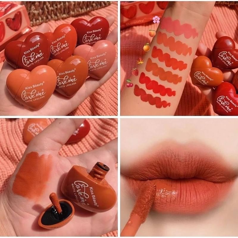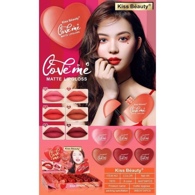 Kiss Beauty LoveMe Matte Lip Gloss ลิปหัวใจสุดฮิต แพคเกจสุดคิ้วท์ เนื้อแมท เม็ดสีแน่น มีถึง 6 สี