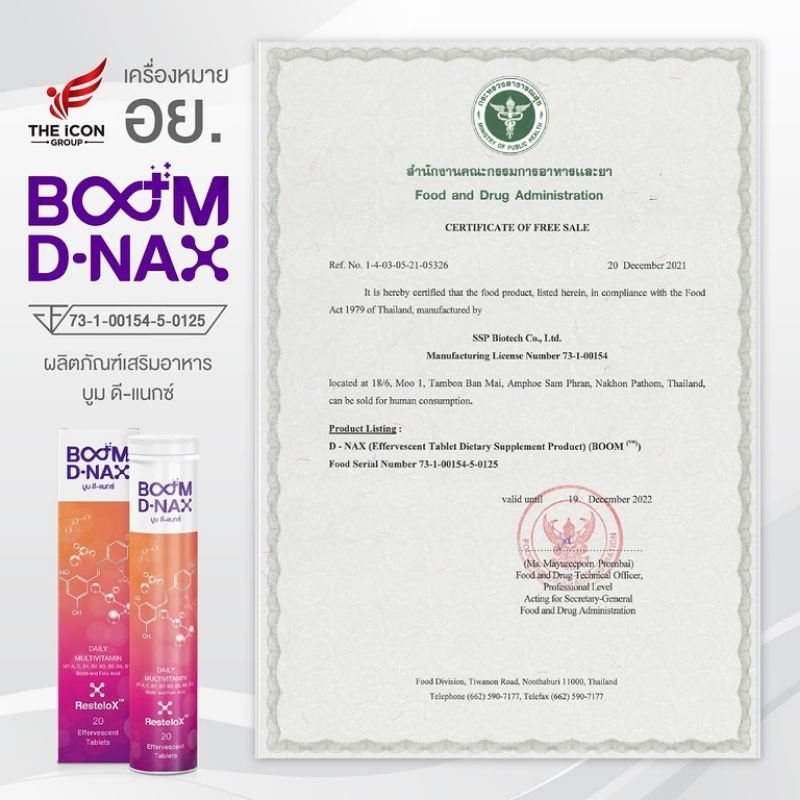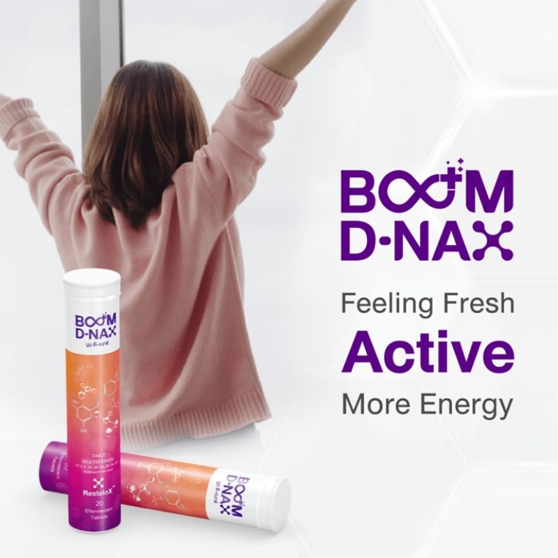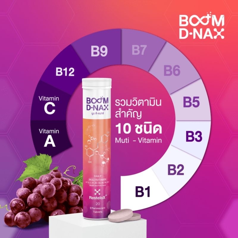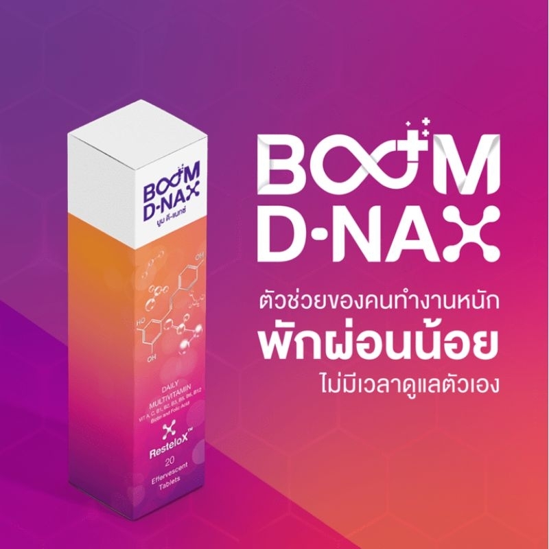 Boom Dnax บูม ดีแนกซ์ นวัตกรรมเม็ดฟู่มัลติวิตามิน ฟื้นฟูร่างกาย 1 หลอด 20 เม็ด