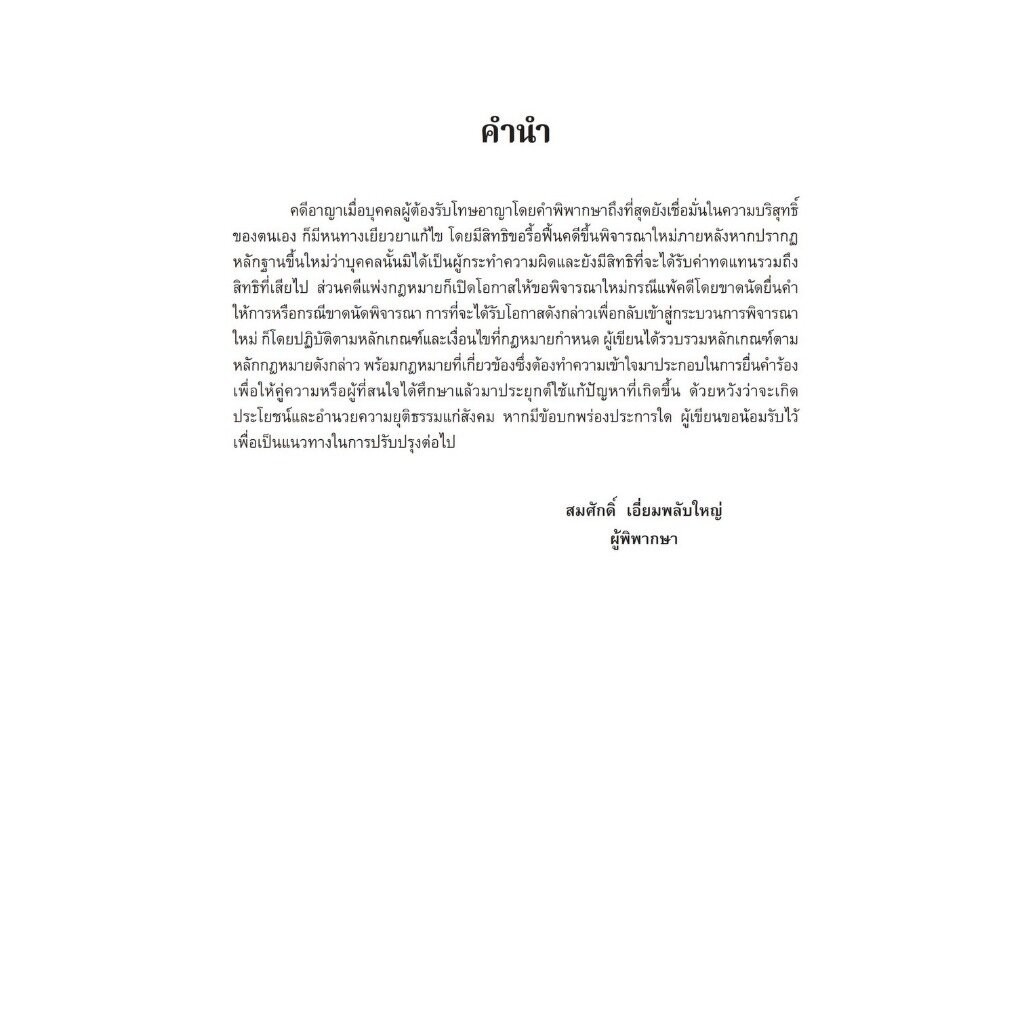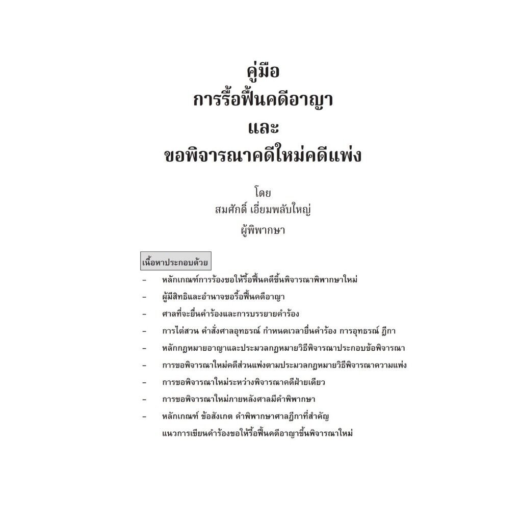 คู่มือการรื้อฟื้นคดีอาญาและขอพิจารณาคดีใหม่คดีแพ่ง โดย : สมศักดิ์ เอี่ยมพลับใหญ่ /พิมพ์ : กุมภาพันธ์ 2567 (ครั้งที่ 1)